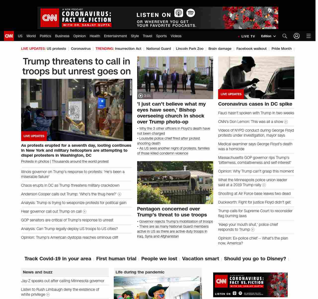 CNN1: FOXVCNN=|Trump threatens to call in troops but unrest goes on| ((lubuntu at wor3))