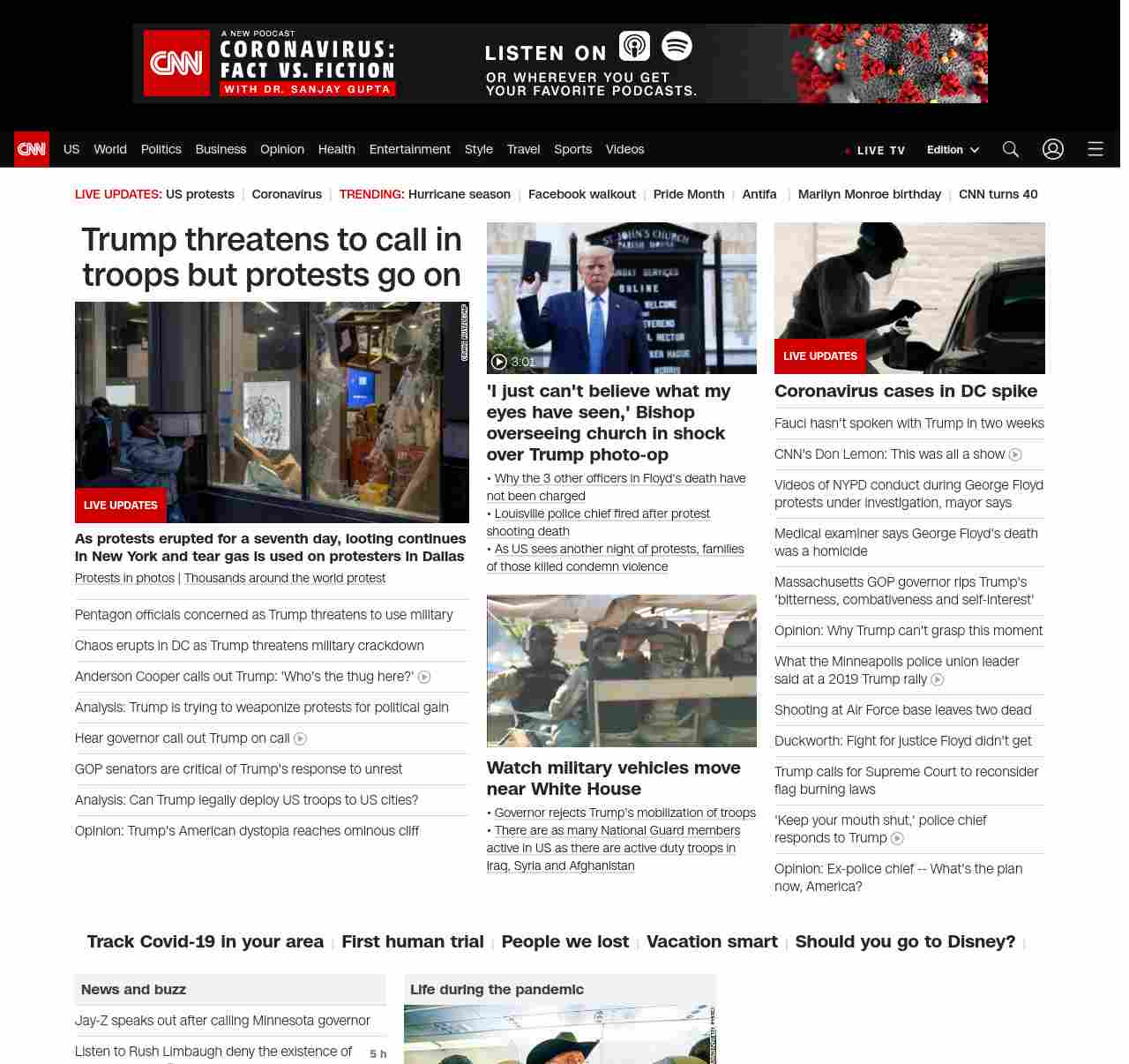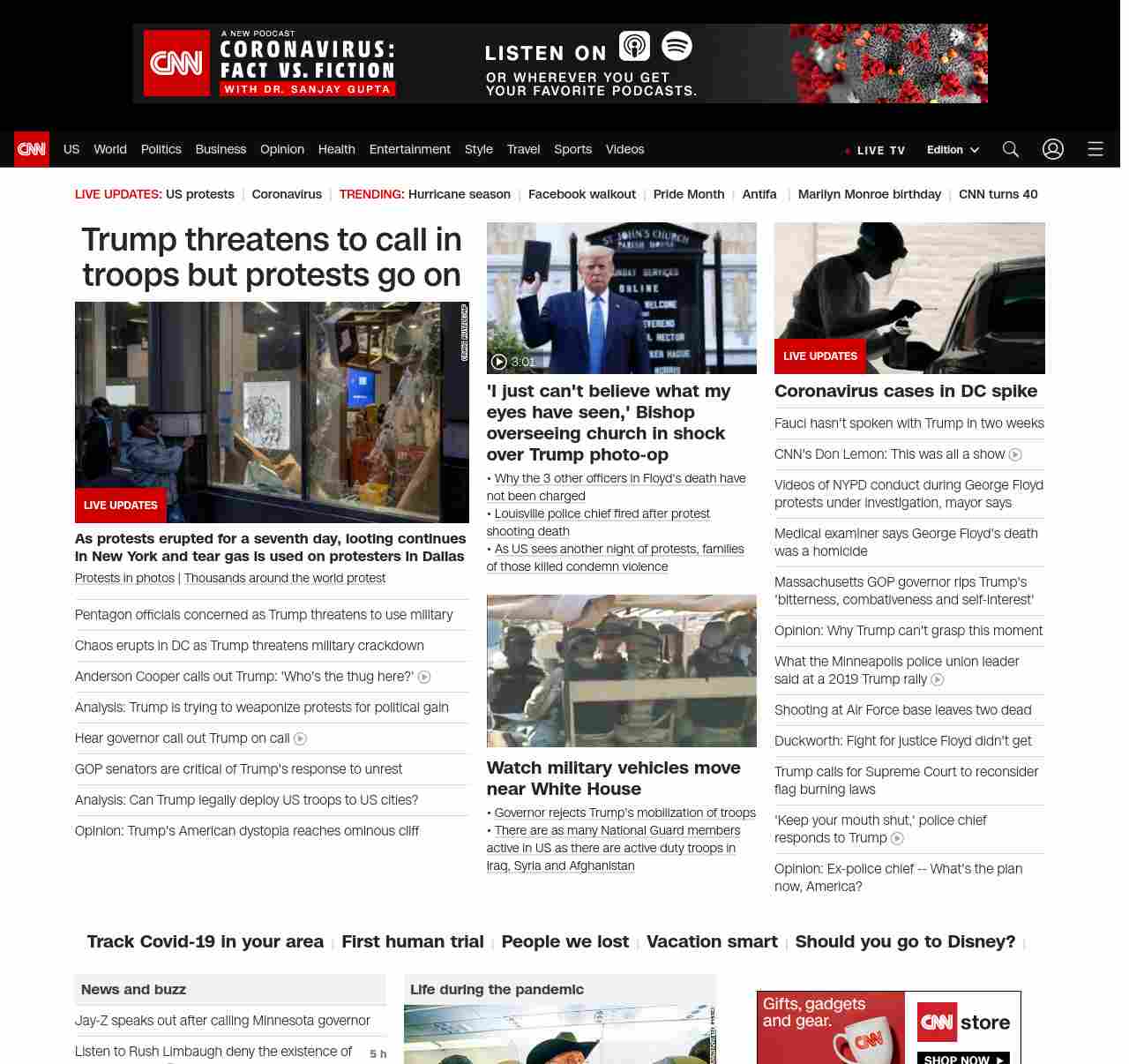 CNN1: FOXVCNN=|Trump threatens to call in troops but protests go on| ((lubuntu at wor3))