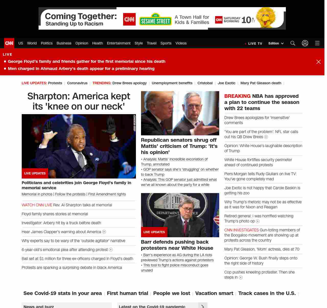 FN: [[SORROW AND ANGER]] WATCH LIVE: Rev. Al Sharpton honors George Floyd, takes swipes at Trump in spirited eulogy ((lubuntu at wor3))