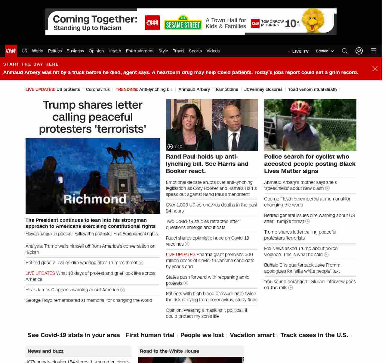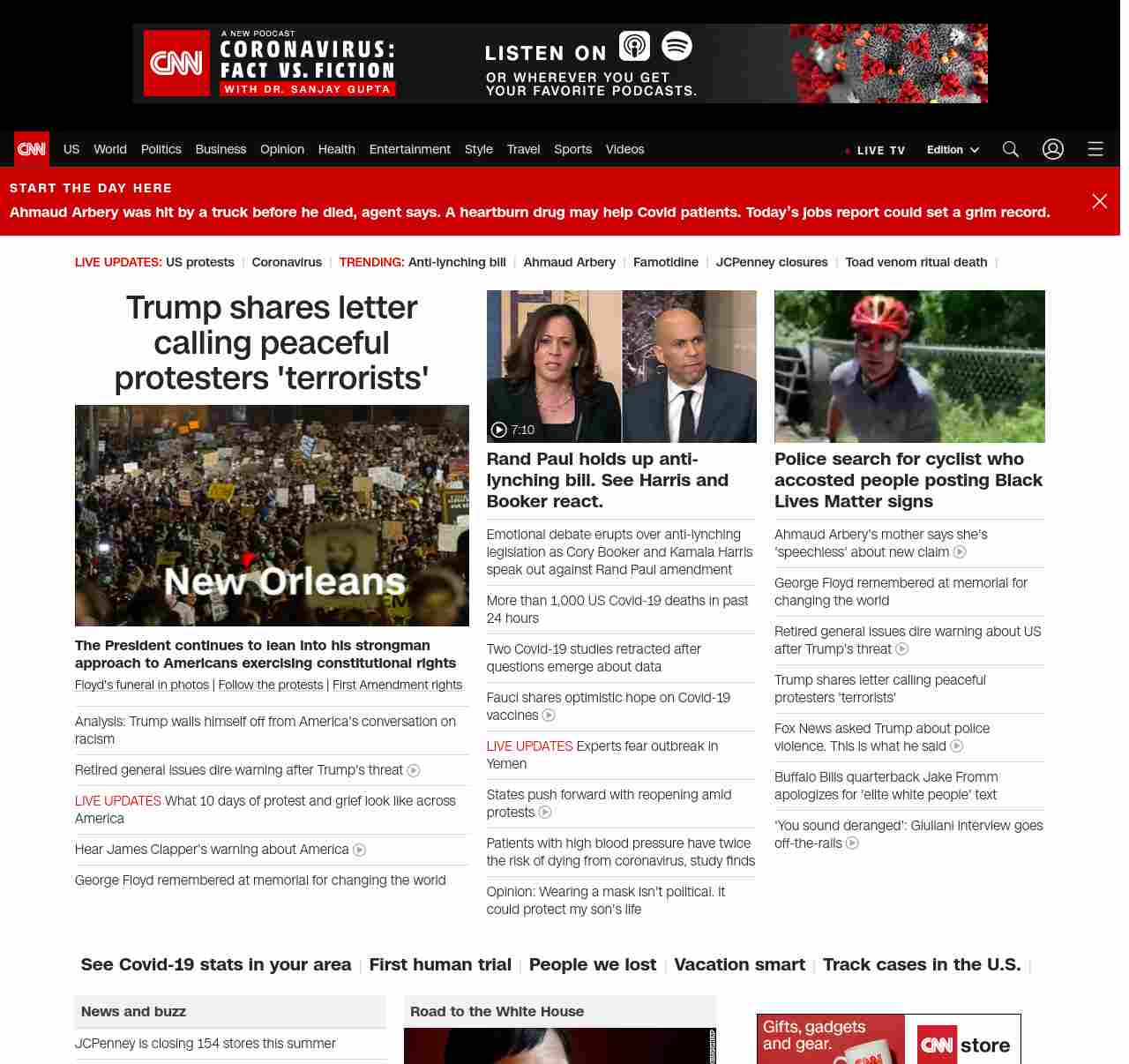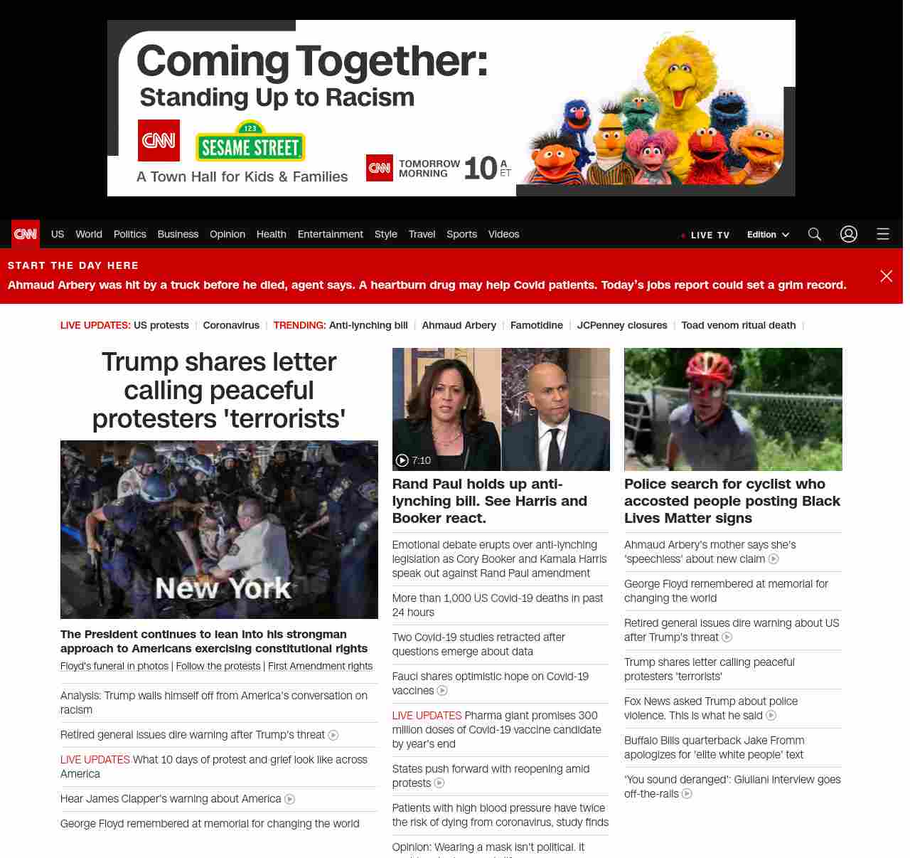 CNN1: FOXVCNN=|Trump shares letter calling peaceful protesters ‘terrorists’| ((lubuntu at wor3))