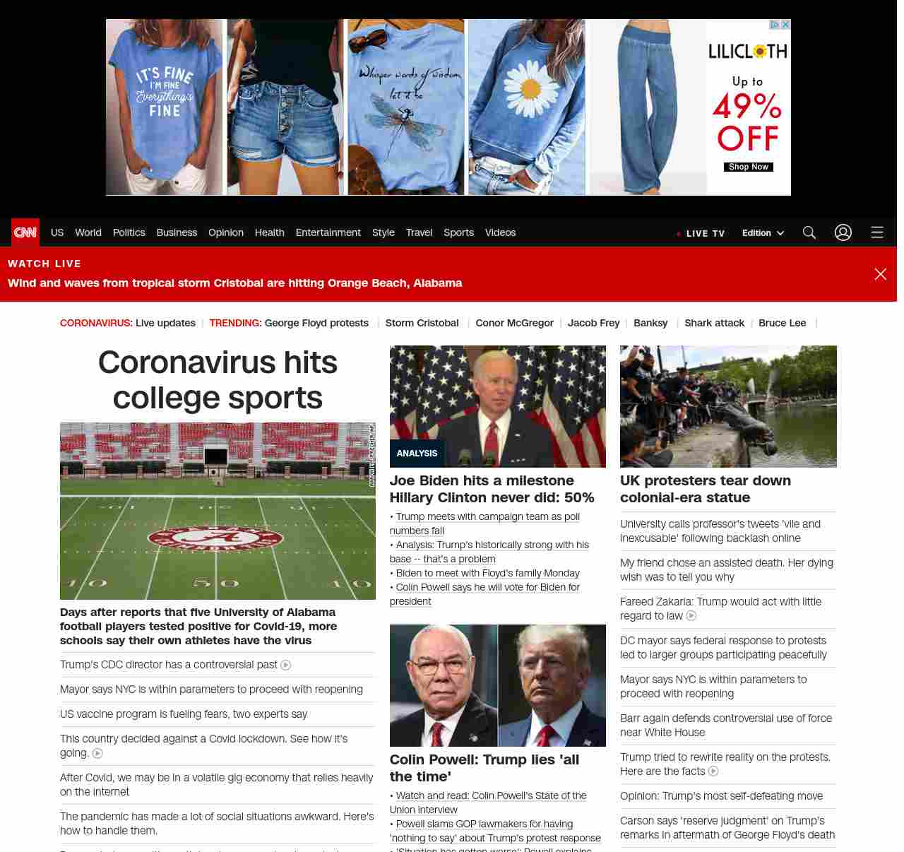 CNN1: FOXVCNN=|Coronavirus hits college sports| ((lubuntu at wor3))