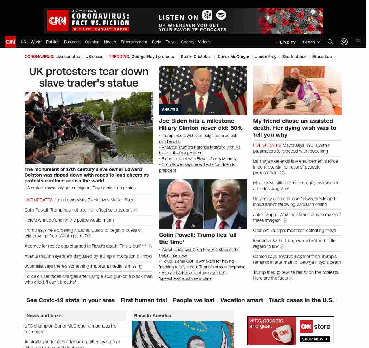CNN1: FOXVCNN=|UK protesters tear down slave trader’s statue| ((lubuntu at wor3))