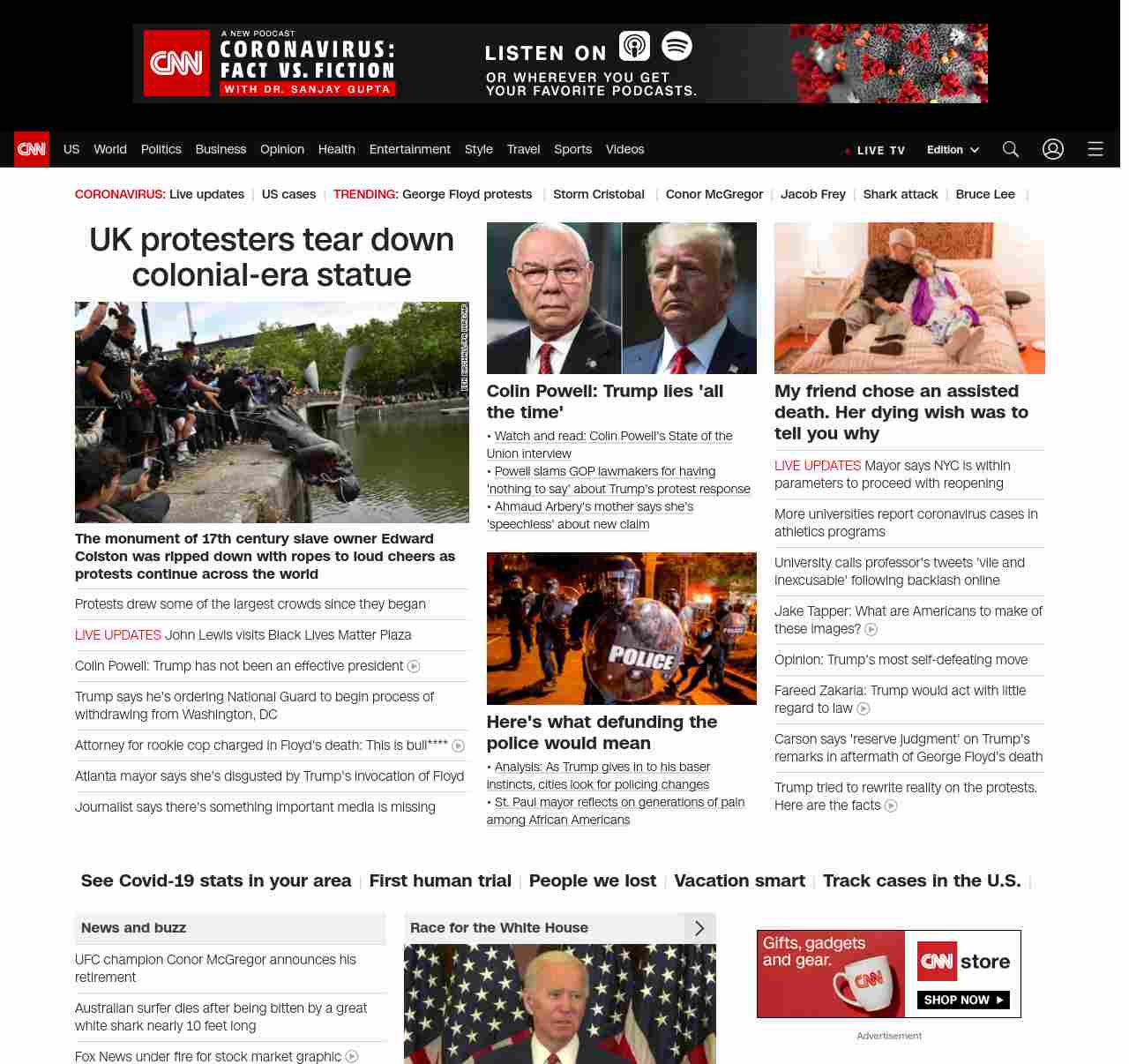CNN1: FOXVCNN=|UK protesters tear down colonial-era statue| ((lubuntu at wor3))