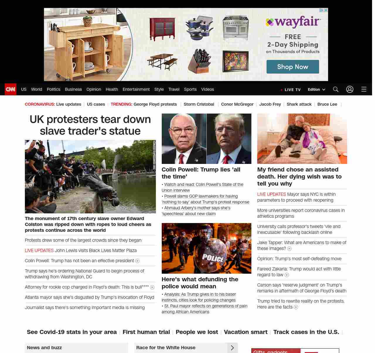 CNN1: FOXVCNN=|UK protesters tear down colonial-era statue| ((lubuntu at wor3))