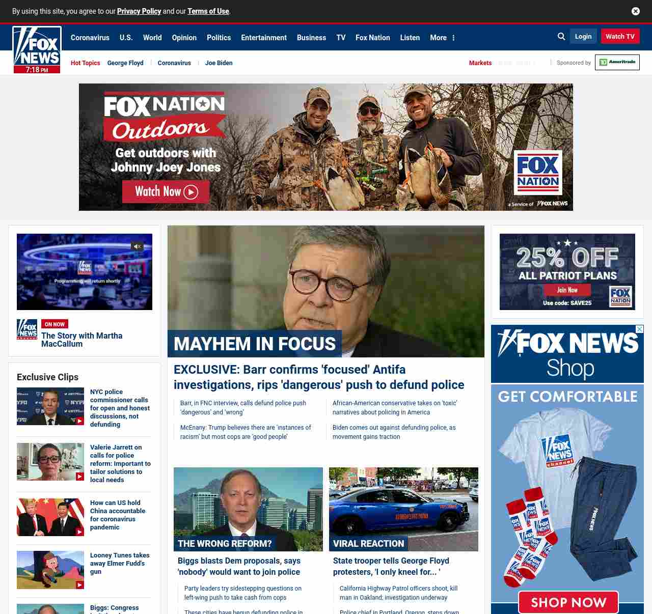 FN: [[MAYHEM IN FOCUS]] EXCLUSIVE: Barr confirms ' focused' Antifa investigations, rips ' dangerous' push to defund police ((lubuntu at wor3))