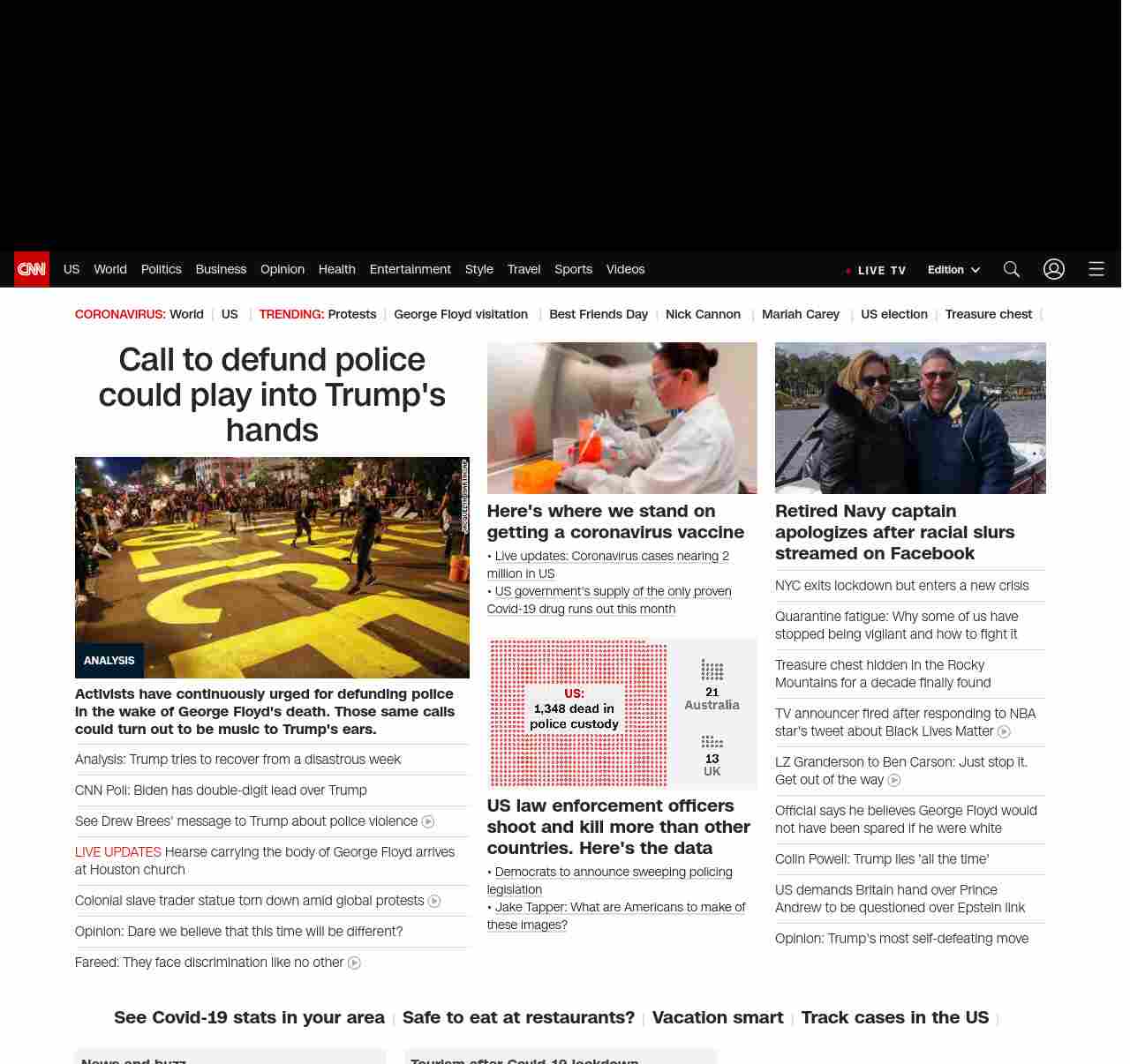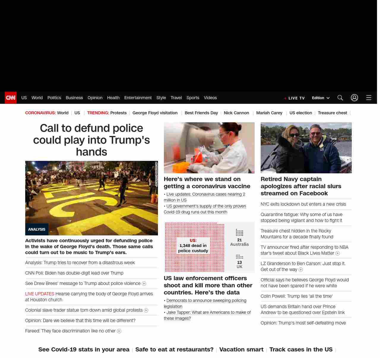 || screaming-banner-text banner-text-size–char-47″ data-analytics=”_list-hierarchical-xs_article_”> Call to defund police could play into Trump’s hands ||”},”chartbeat”:{“sections”:””},”branding_content_page”:”default”,”branding_content_zone”:[“default”],”branding_content_container”:[“default”,”cnn-money-markets”,”space-and-science”,”cnn-heroes-hp”],”branding_content_card”:[“”]} , edition: “domestic” , sourceId: ”
