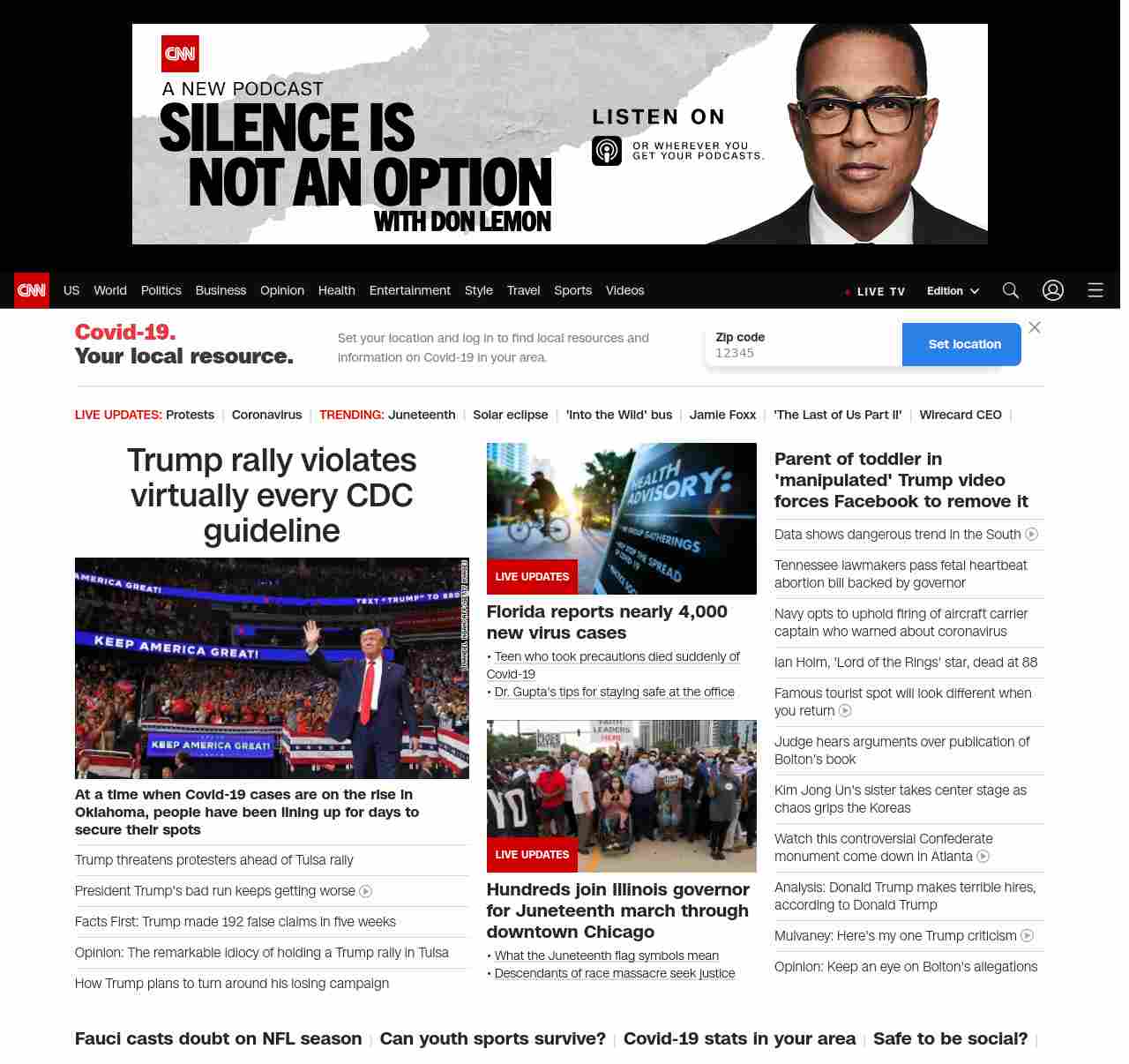CNN1: FOXVCNN=|Trump rally violates virtually every CDC guideline| ((lubuntu at wor3))