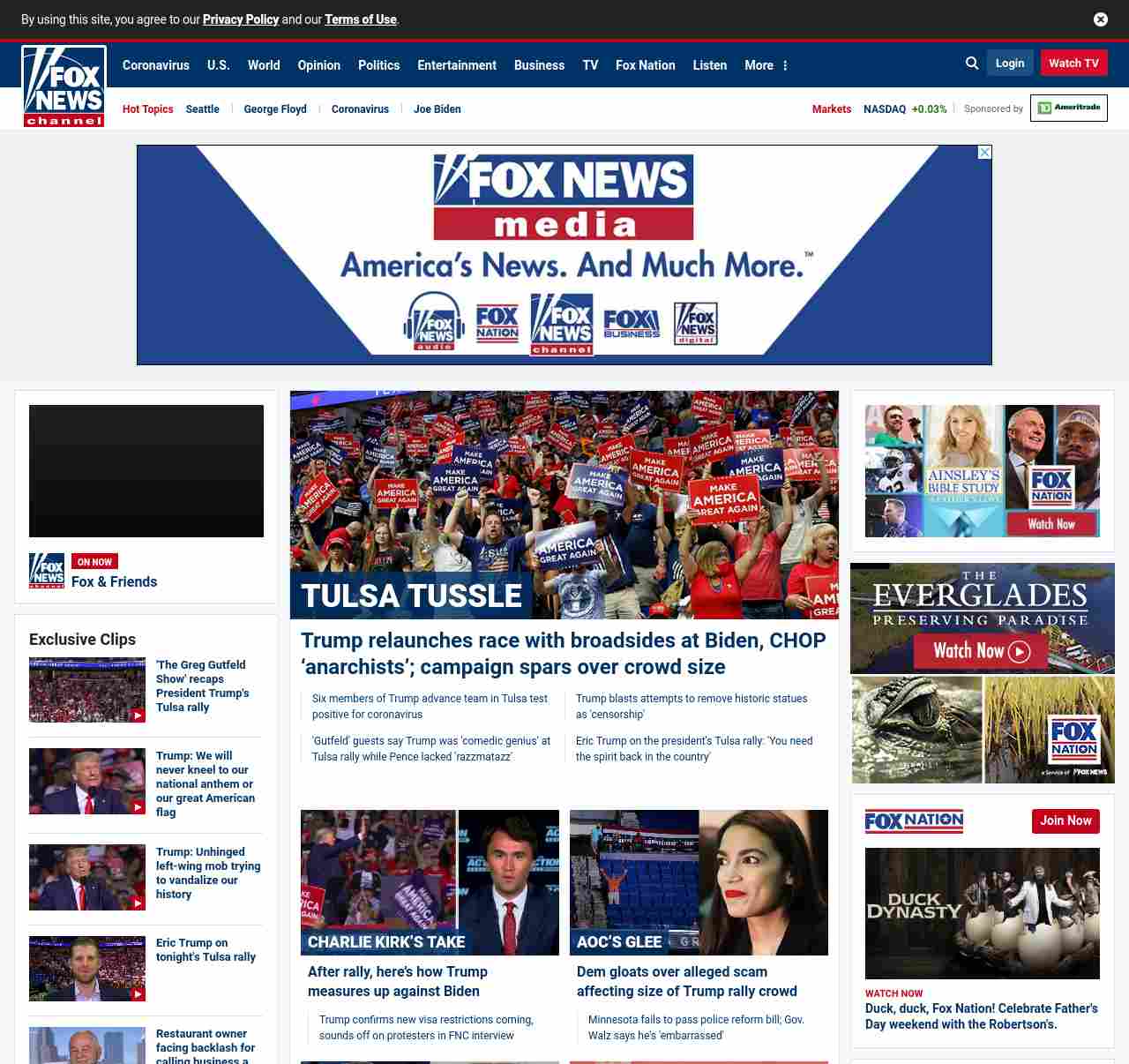 FN: [[TULSA TUSSLE]] Trump relaunches race with broadsides at Biden, CHOP ‘anarchists’; campaign spars over crowd size ((lubuntu at wor3))