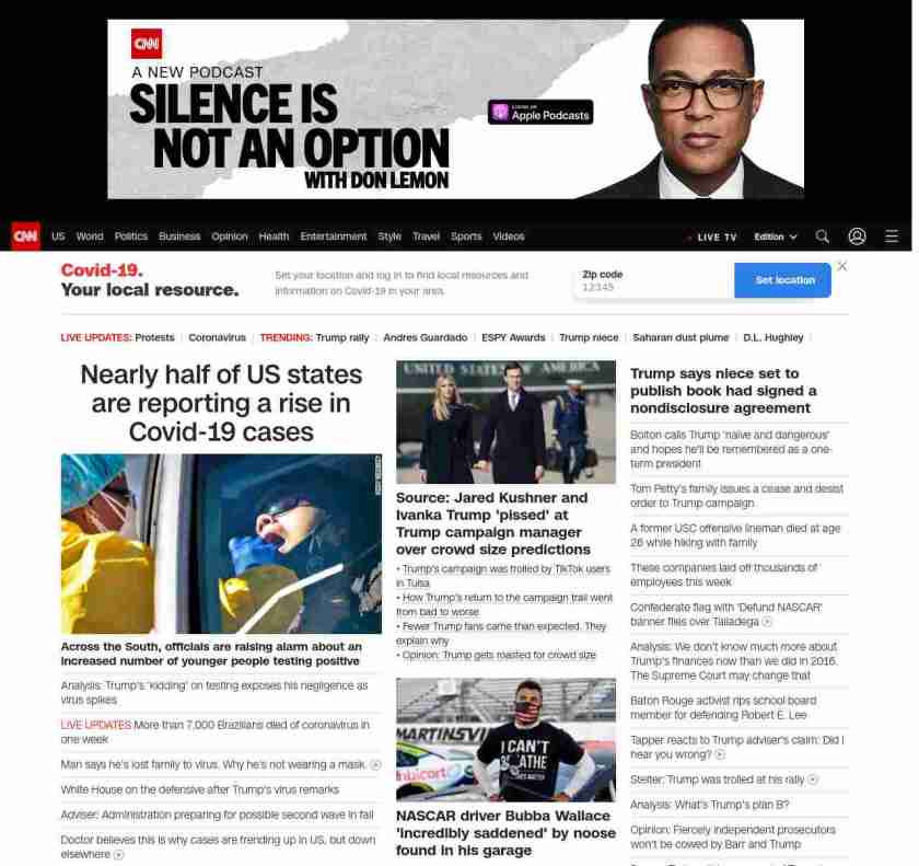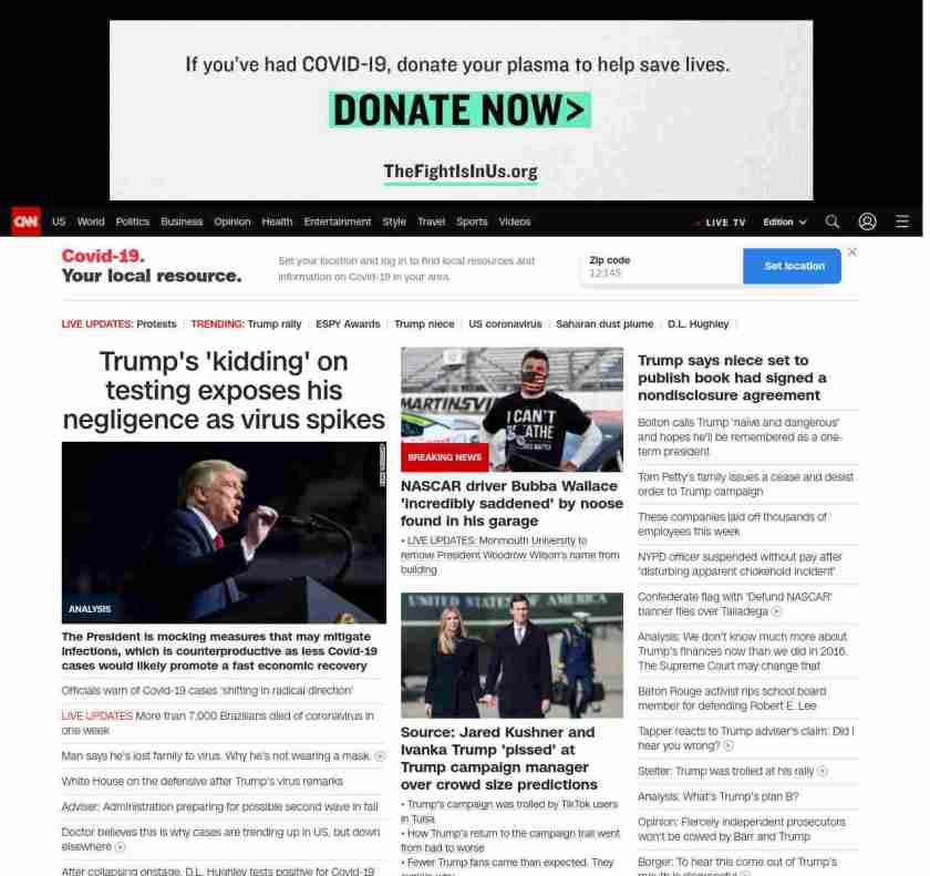 CNN1: FOXVCNN=|Trump’s ‘kidding’ on testing exposes his negligence as virus spikes| ((lubuntu at wor3))