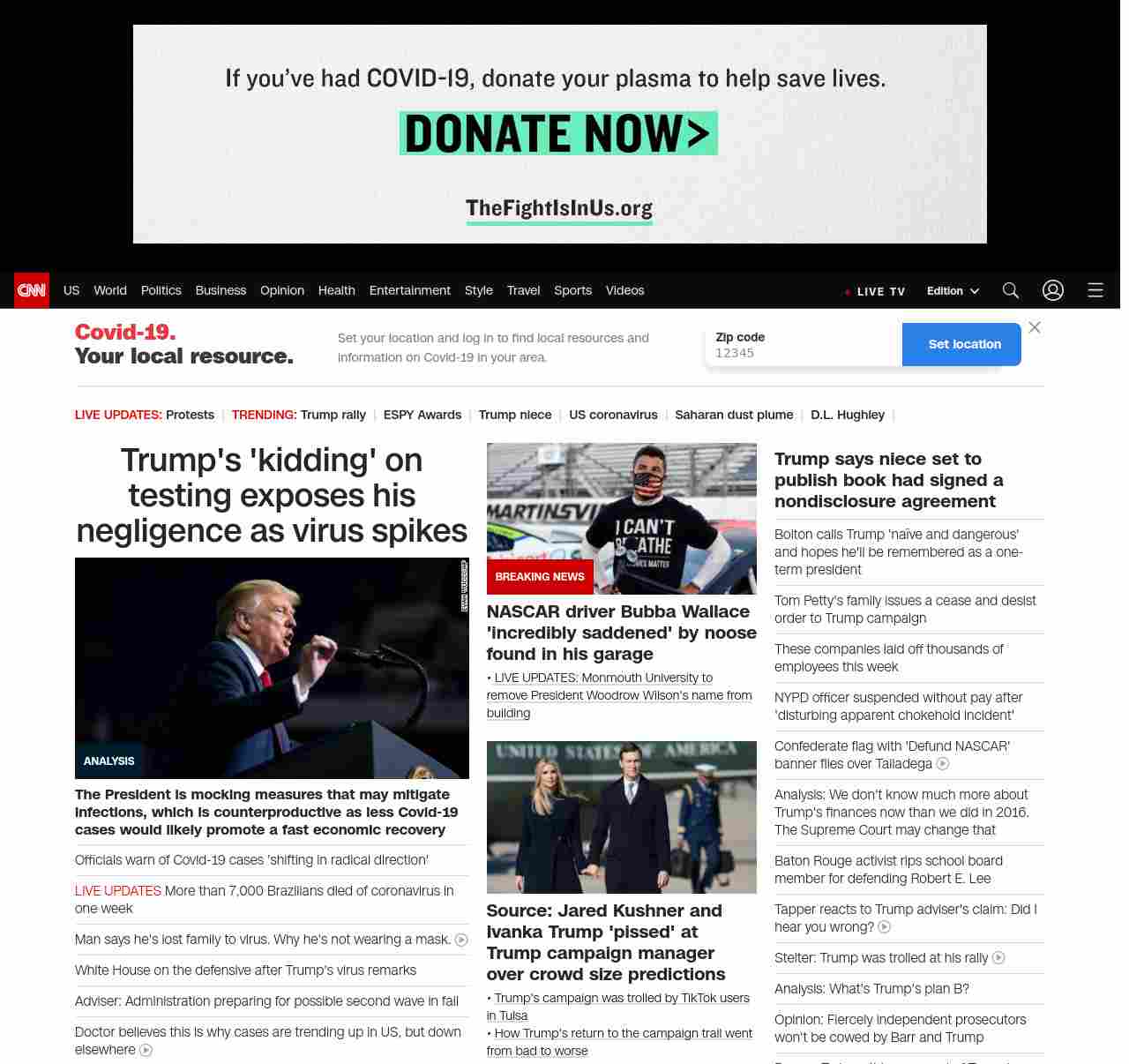 CNN1: FOXVCNN=|Trump’s ‘kidding’ on testing exposes his negligence as virus spikes| ((lubuntu at wor3))
