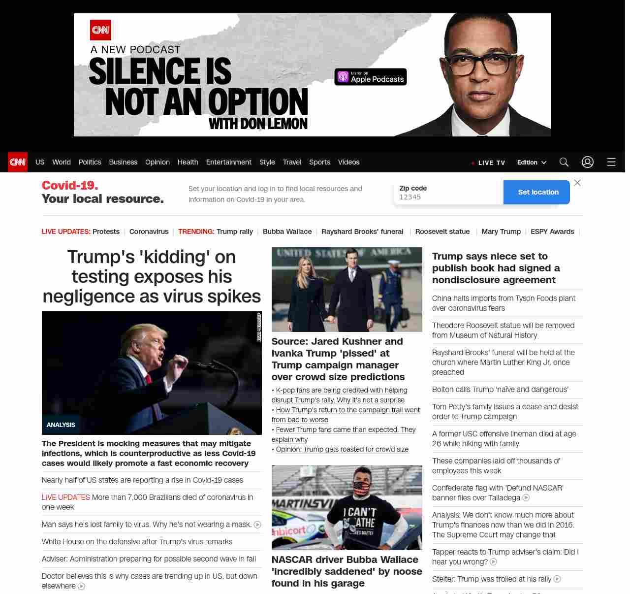 CNN2: subjectpartBANNER=|=”banner-text screaming-banner-text banner-text-size–char-47″ data-analytics=”_list-hierarchical-xs_article_”>Trump’s ‘kidding’ on testing exposes his negligence as virus spikes| ((lubuntu at wor3)))