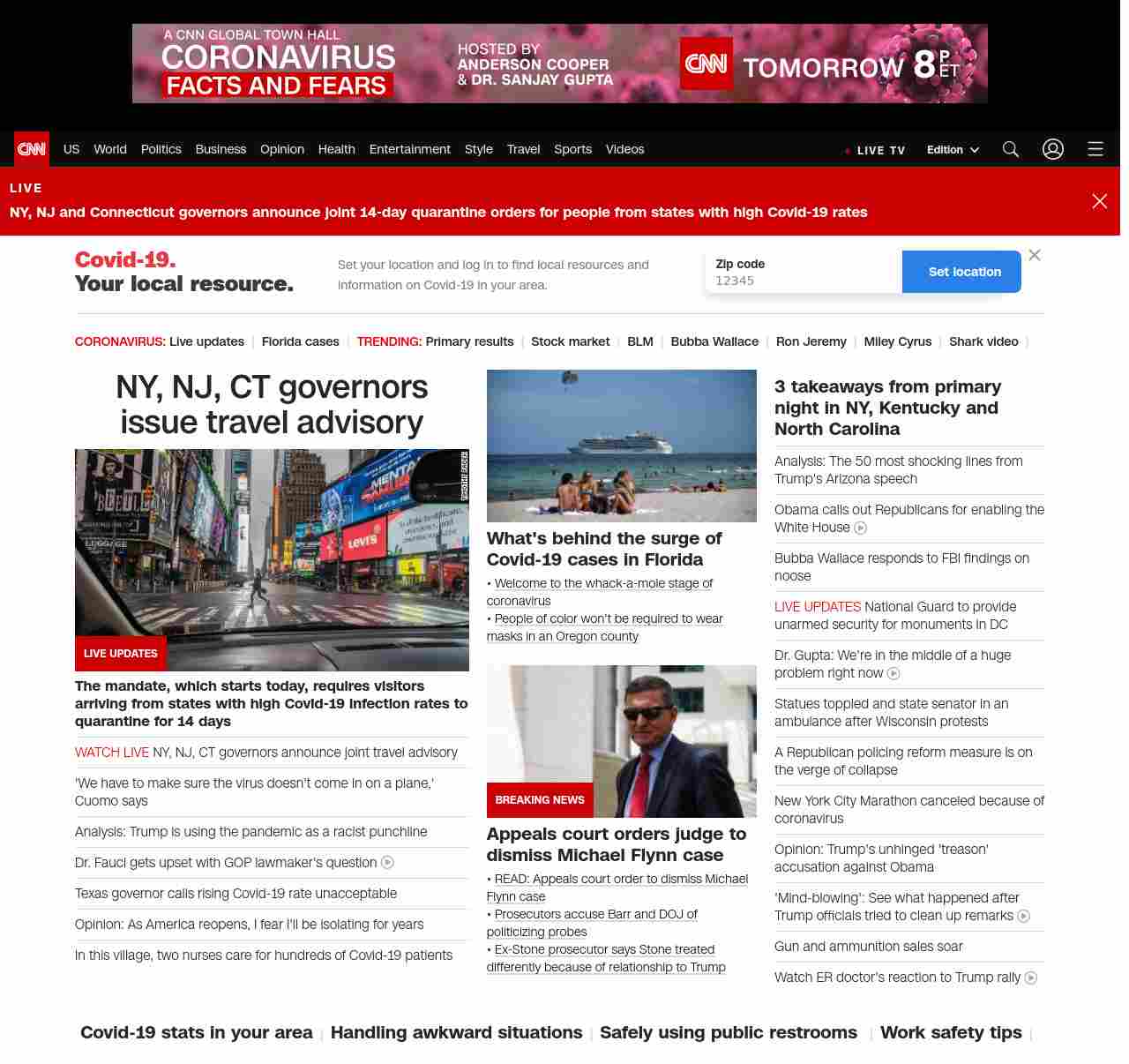 CNN1: FOXVCNN=|NY, NJ, CT governors issue travel advisory| ((lubuntu at wor3))