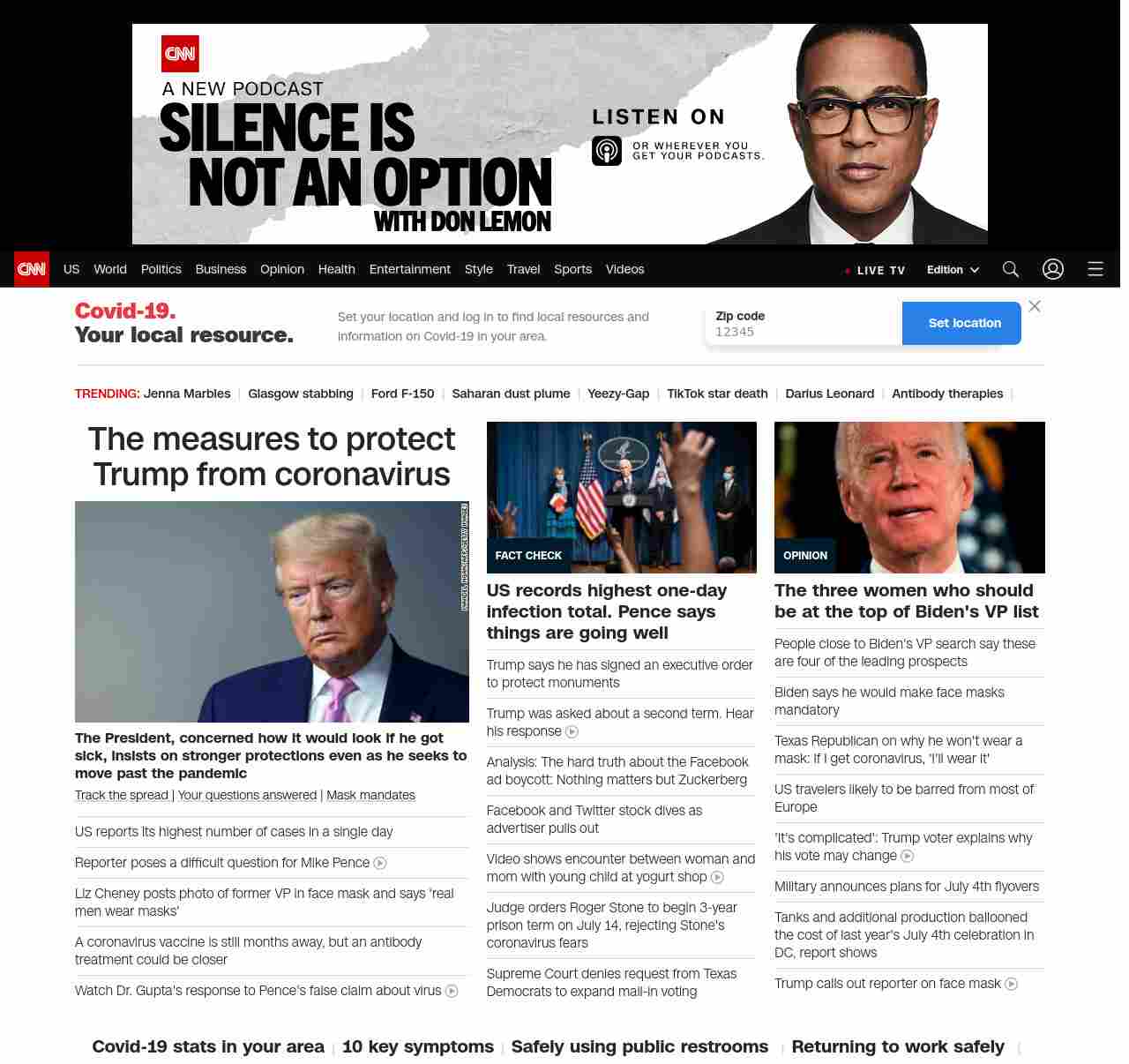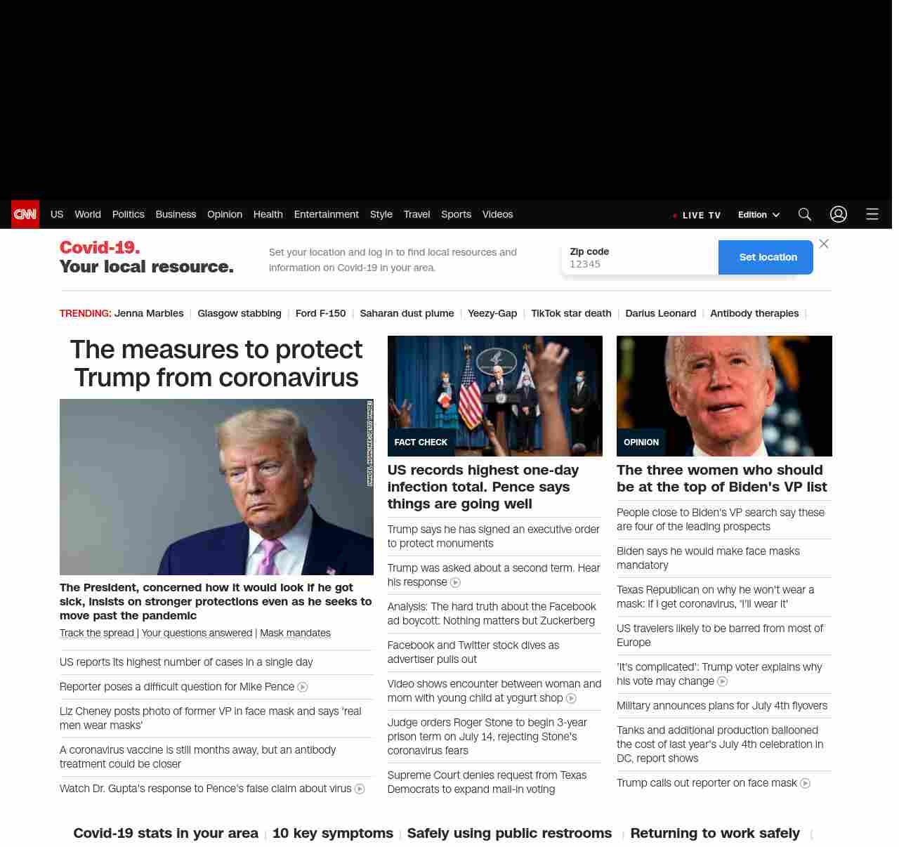 || screaming-banner-text banner-text-size–char-47″ data-analytics=”_list-hierarchical-xs_article_”> US records highest one-day infection total. Pence says things are going well ||=”banner-text screaming-banner-text banner-text-size–char-47″ data-analytics=”_list-hierarchical-xs_article_”>The measures to protect Trump from coronavirus