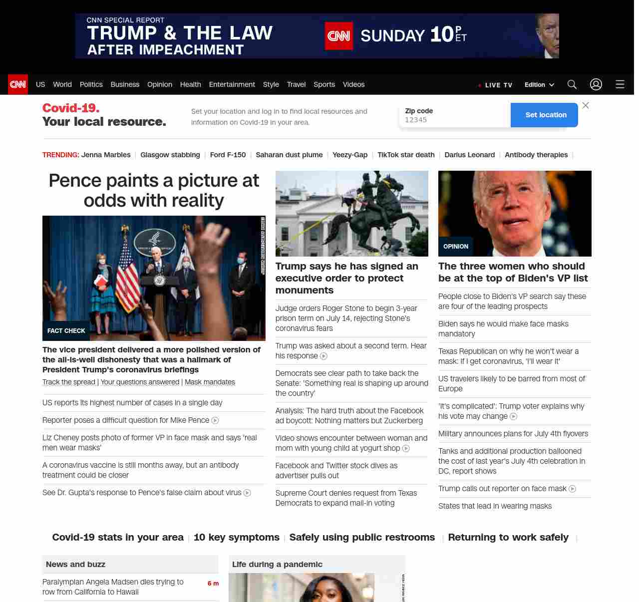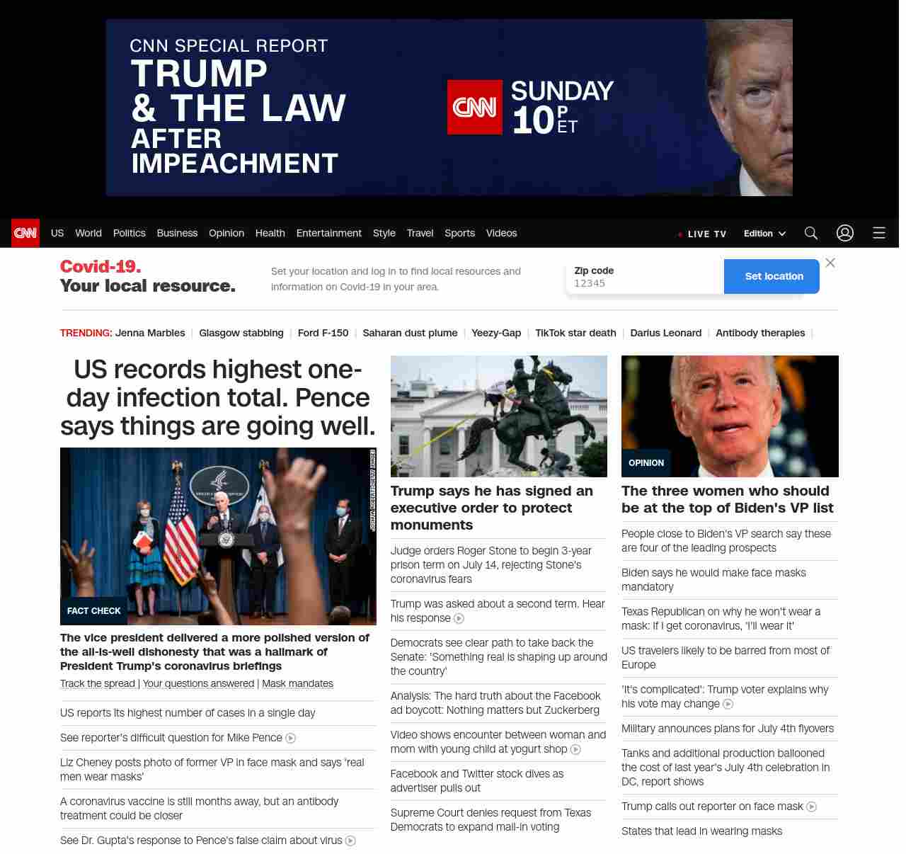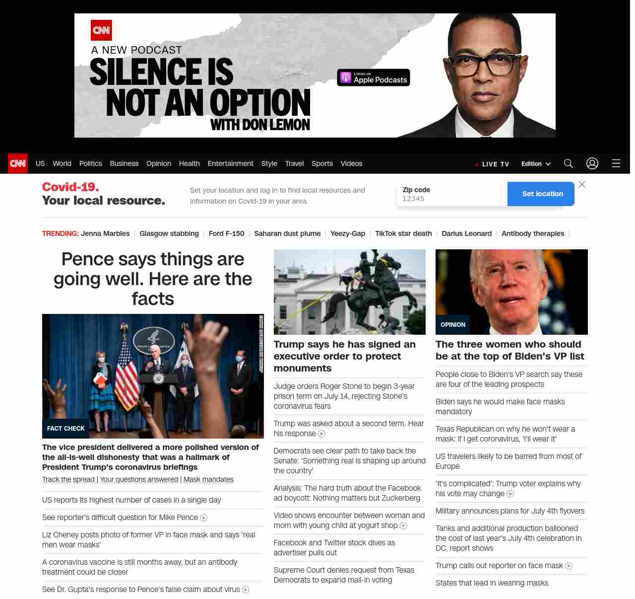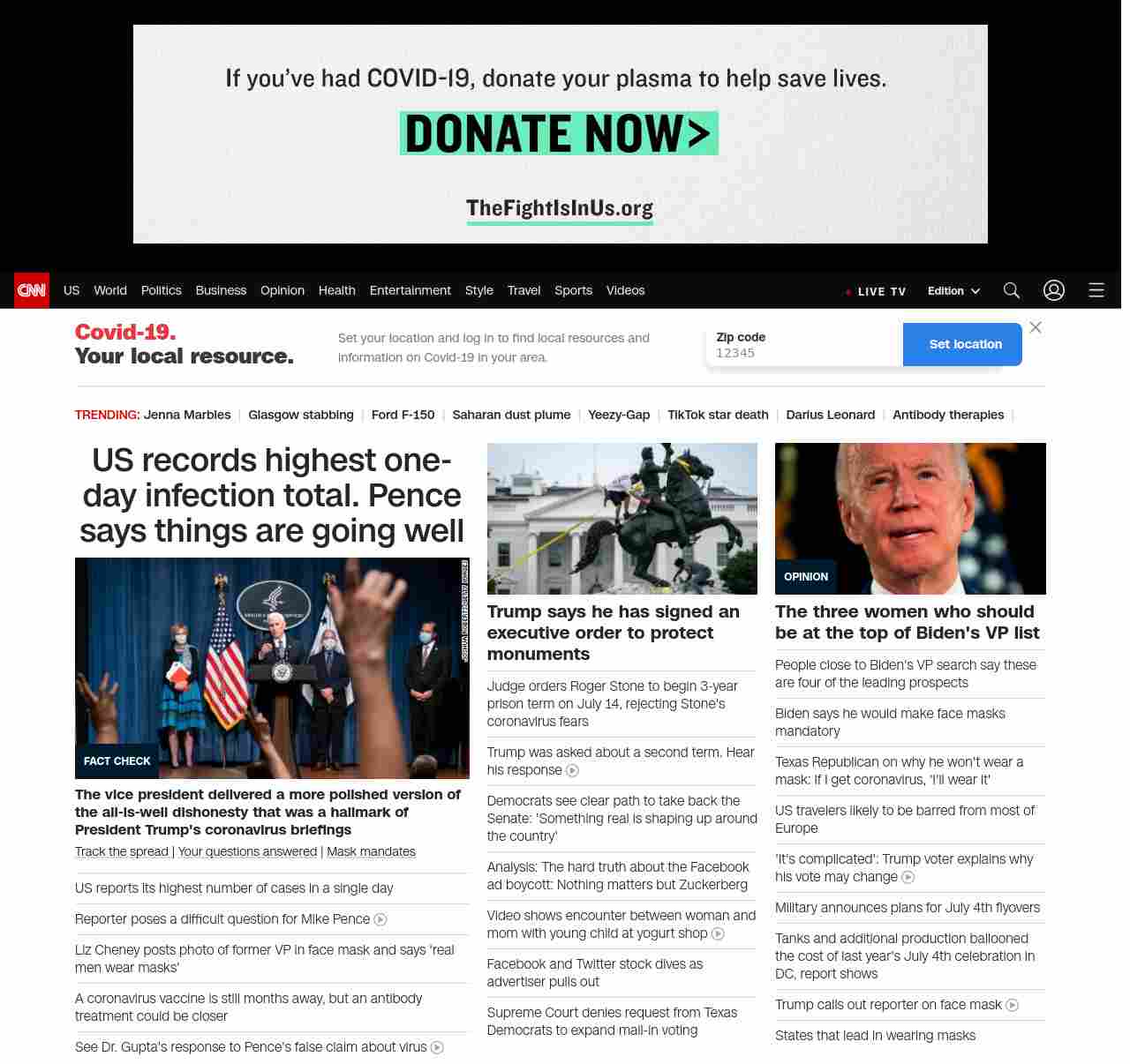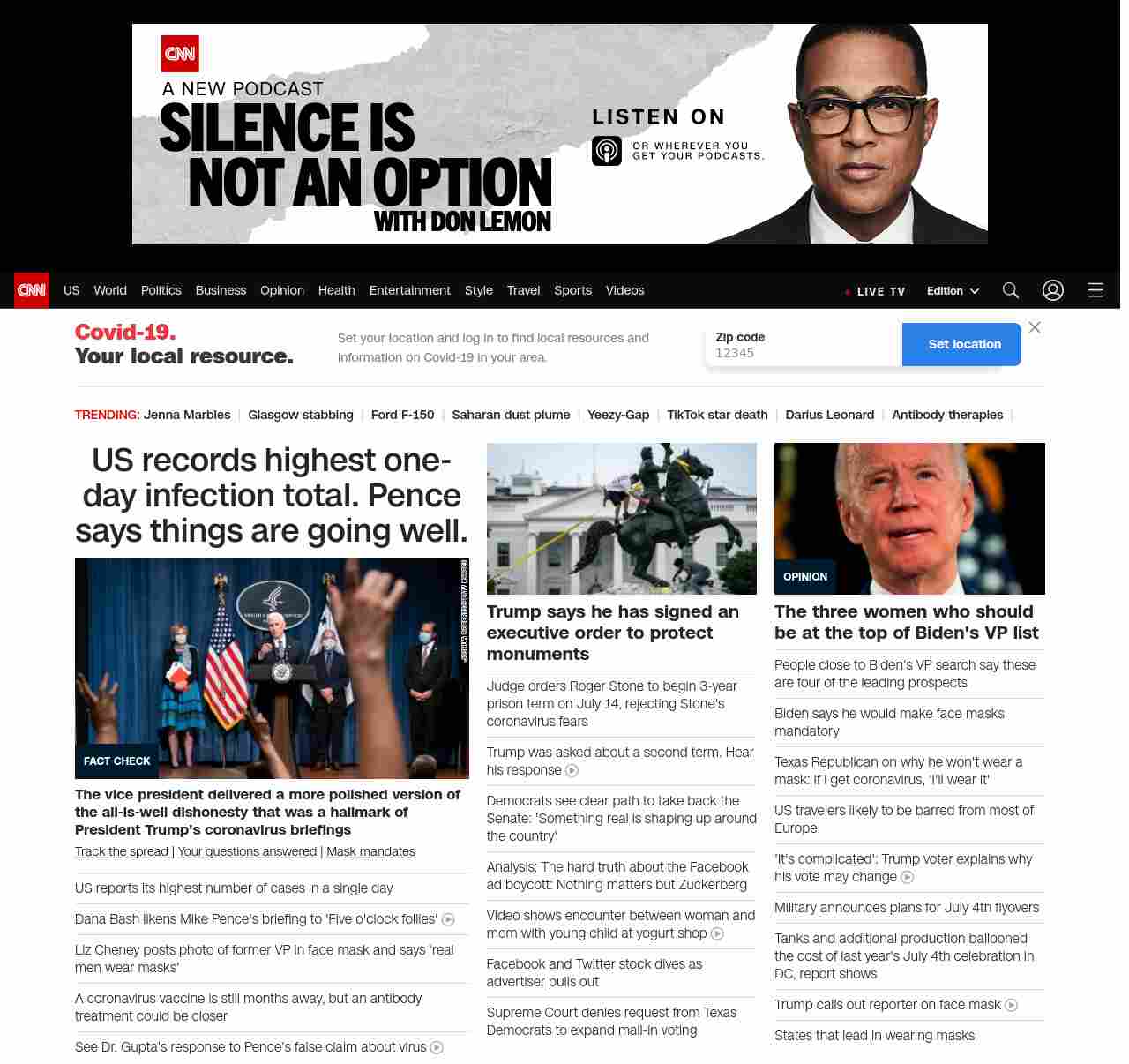 CNN1: FOXVCNN=|US records highest one-day infection total. Pence says things are going well| ((lubuntu at wor3))