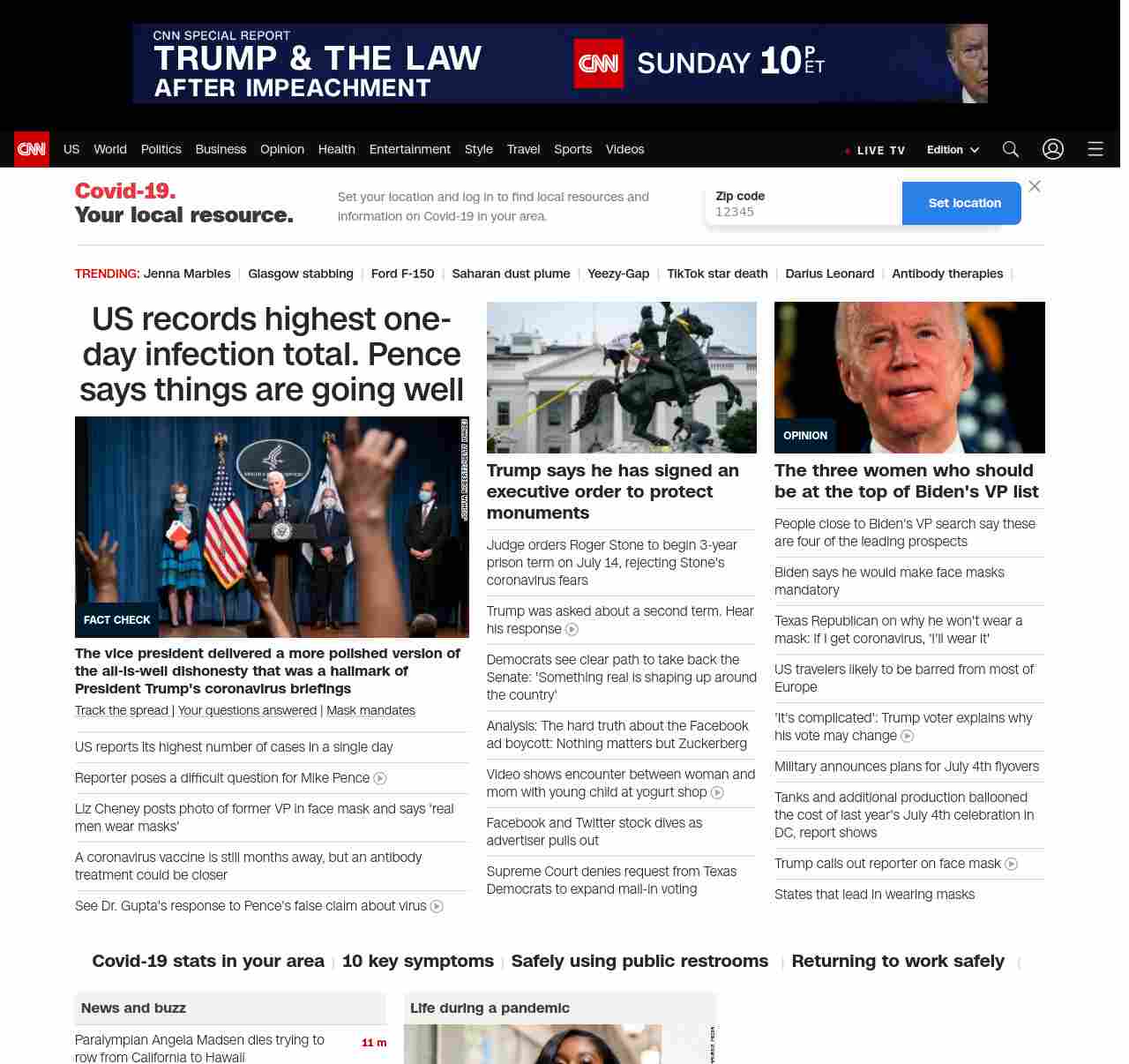 || screaming-banner-text banner-text-size–char-47″ data-analytics=”_list-hierarchical-xs_article_”> US records highest one-day infection total. Pence says things are going well ||”},”chartbeat”:{“sections”:””},”branding_content_page”:”default”,”branding_content_zone”:[“default”],”branding_content_container”:[“default”,”cnn-money-markets”,”space-and-science”,”cnn-heroes-hp”],”branding_content_card”:[“”]} , edition: “domestic” , sourceId: ”