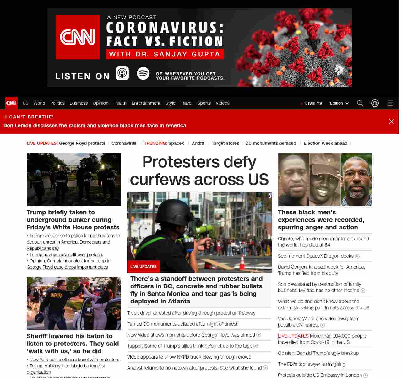 CNN1: FOXVCNN=|Protesters defy curfews across US| ((lubuntu at wor3))