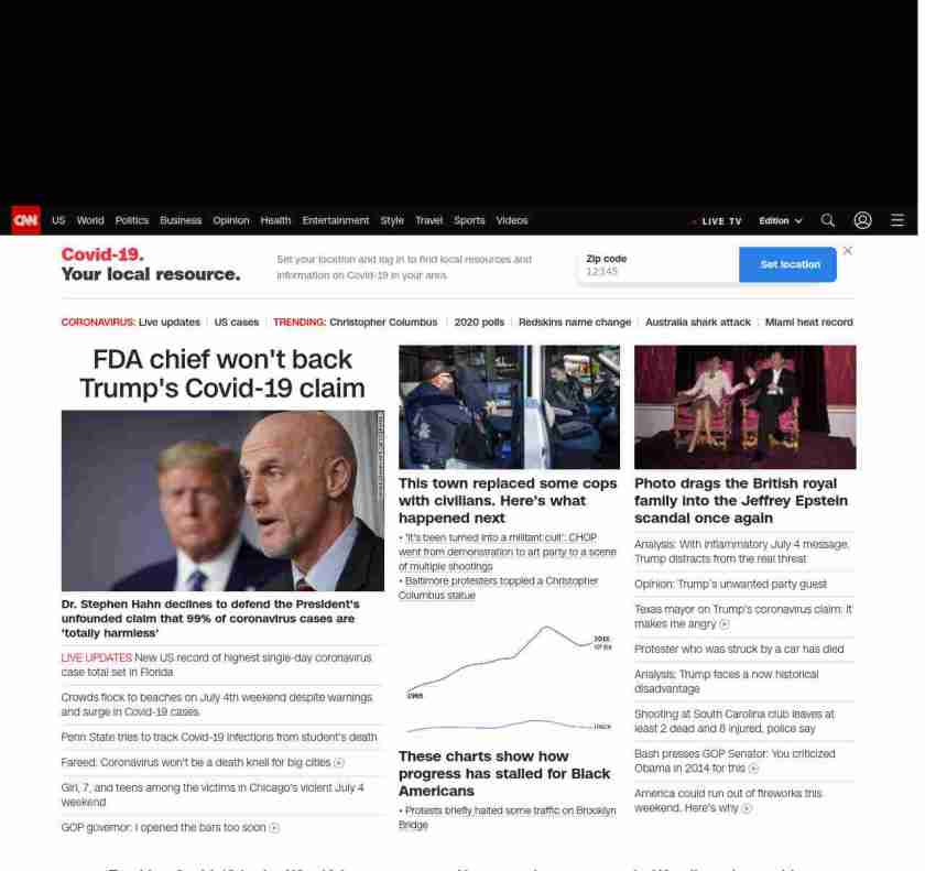 || screaming-banner-text banner-text-size–char-44″ data-analytics=”_list-hierarchical-xs_article_”> FDA chief won’t back Trump’s Covid-19 claim ||”},”chartbeat”:{“sections”:””},”branding_content_page”:”default”,”branding_content_zone”:[“default”],”branding_content_container”:[“default”,”cnn-money-markets”,”space-and-science”,”cnn-heroes-hp”],”branding_content_card”:[“”]} , edition: “domestic” , sourceId: ”