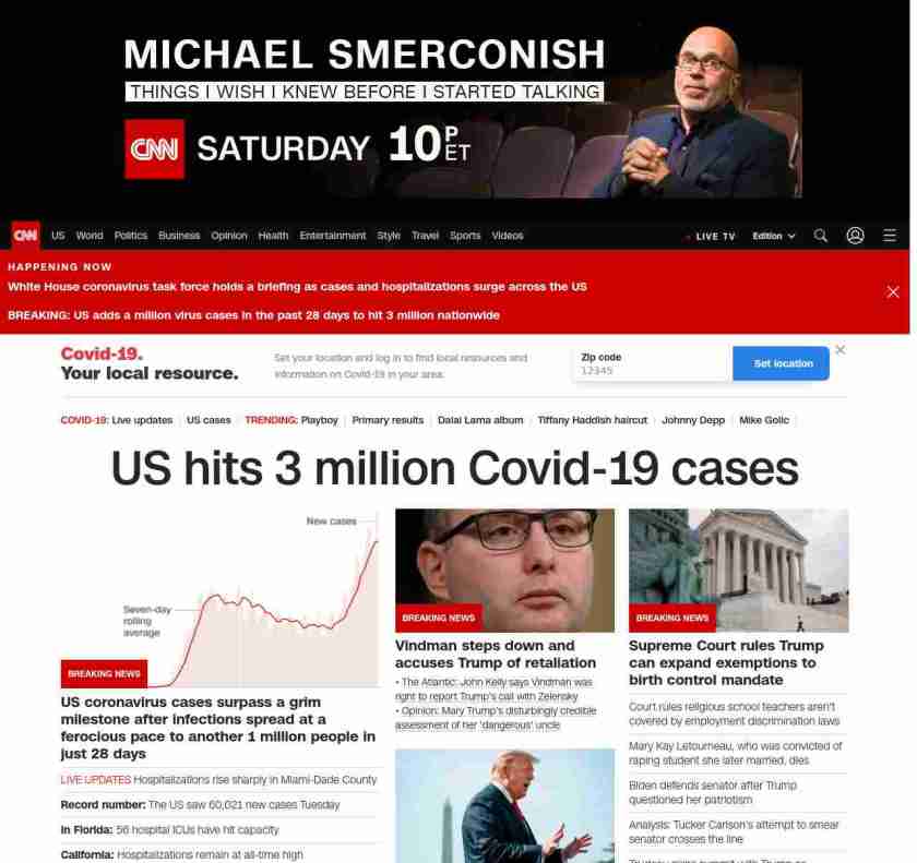 || banner-text–maximized banner-text-size–char-35″> US hits 3 million Covid-19 cases ||”},”chartbeat”:{“sections”:””},”branding_content_page”:”default”,”branding_content_zone”:[“default”],”branding_content_container”:[“default”,”cnn-money-markets”,”space-and-science”,”cnn-heroes-hp”],”branding_content_card”:[“”]} , edition: “domestic” , sourceId: ”