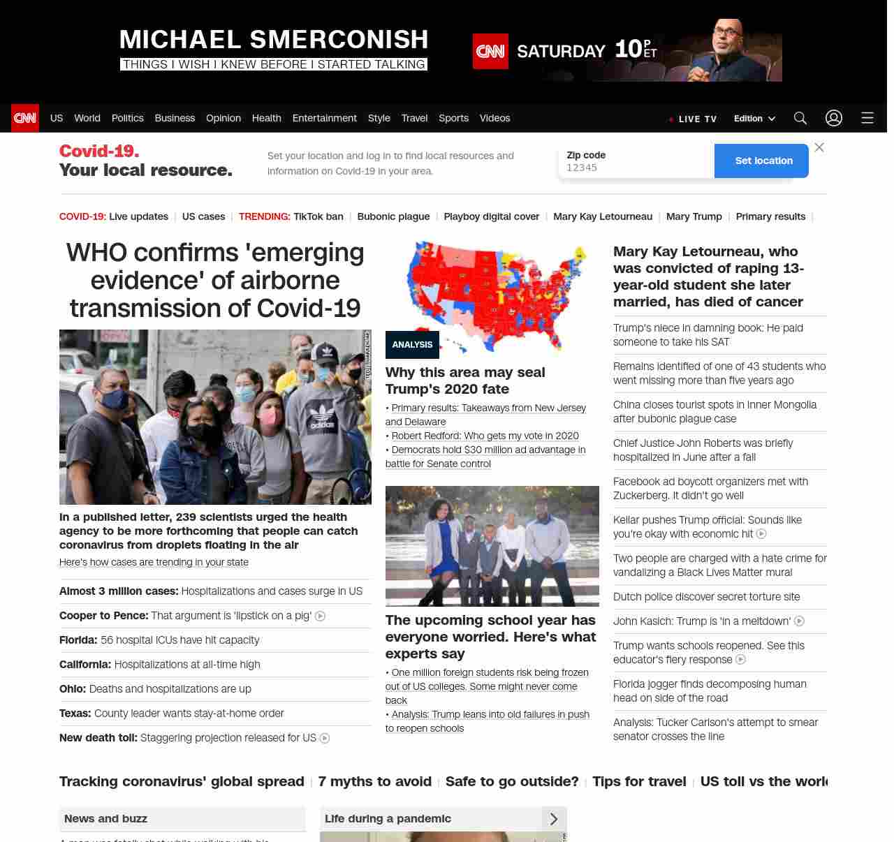 CNN1: FOXVCNN=|WHO confirms ’emerging evidence’ of airborne transmission of Covid-19| ((lubuntu at wor3))