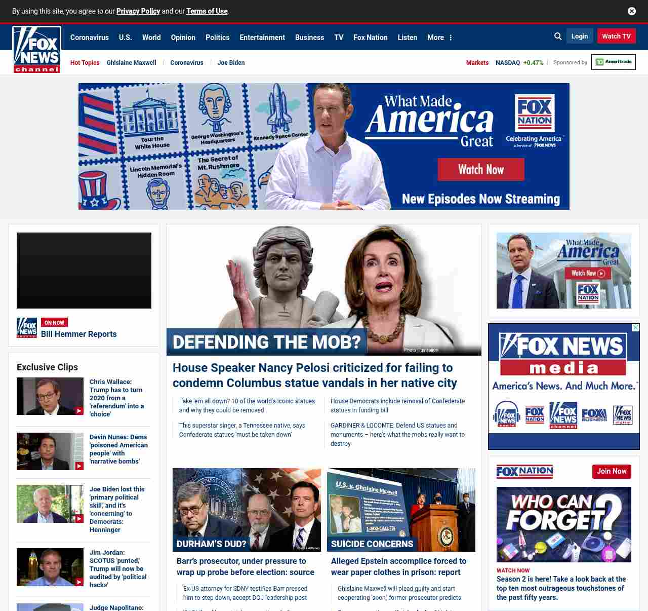 FN: [[DEFENDING THE MOB?]] House Speaker Nancy Pelosi criticized for failing to condemn Columbus statue vandals in her native city ((lubuntu at wor3))