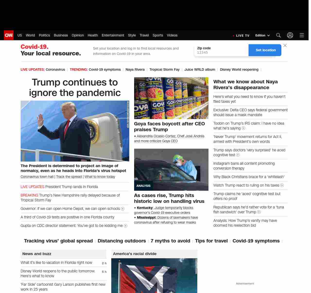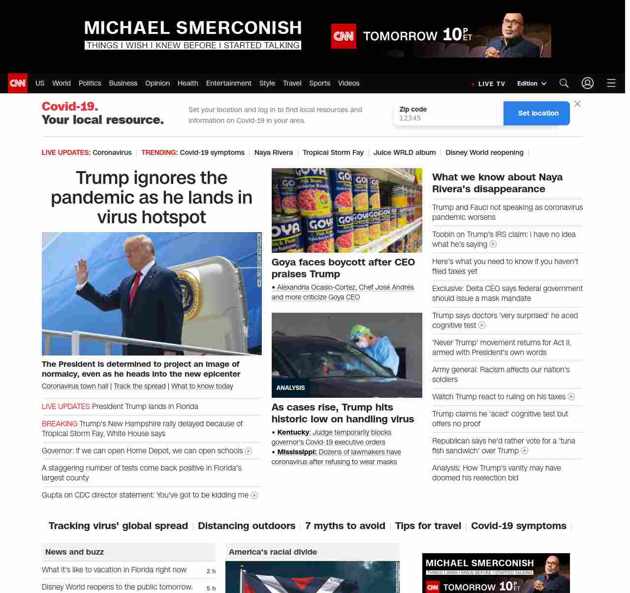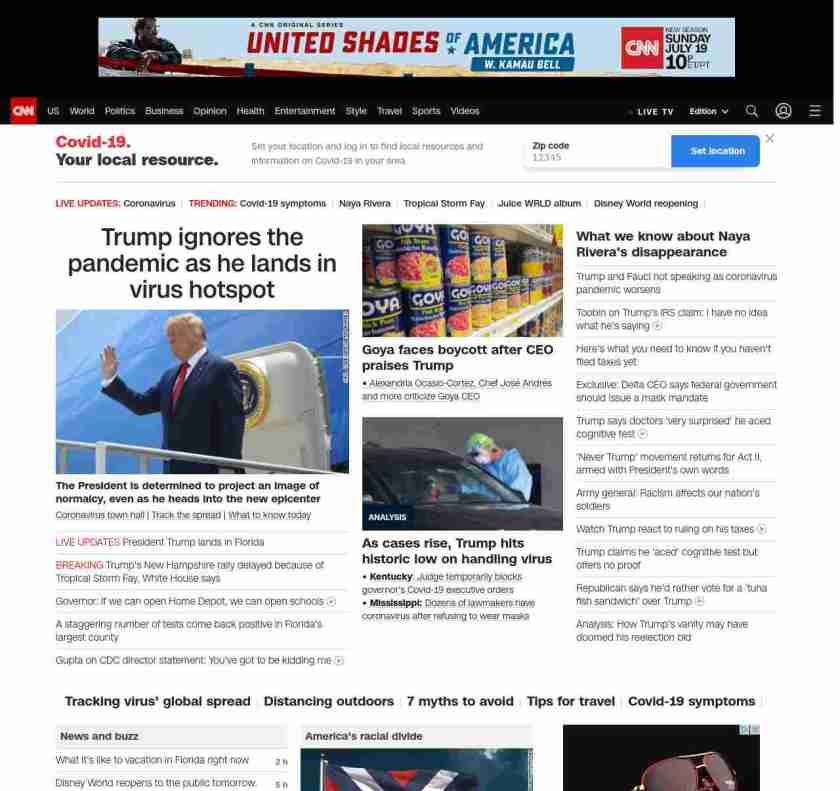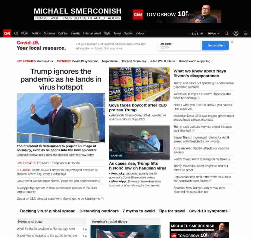 CNN1: FOXVCNN=|Trump ignores the pandemic as he lands in virus hotspot| ((lubuntu at wor3))