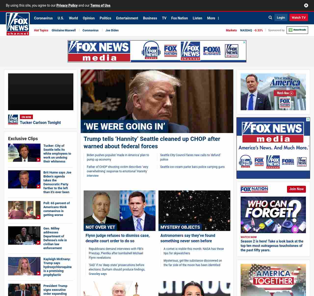 FN: [[‘WE WERE GOING IN’]] Trump tells ‘Hannity’ Seattle cleaned up CHOP after warned about federal forces ((lubuntu at wor3))