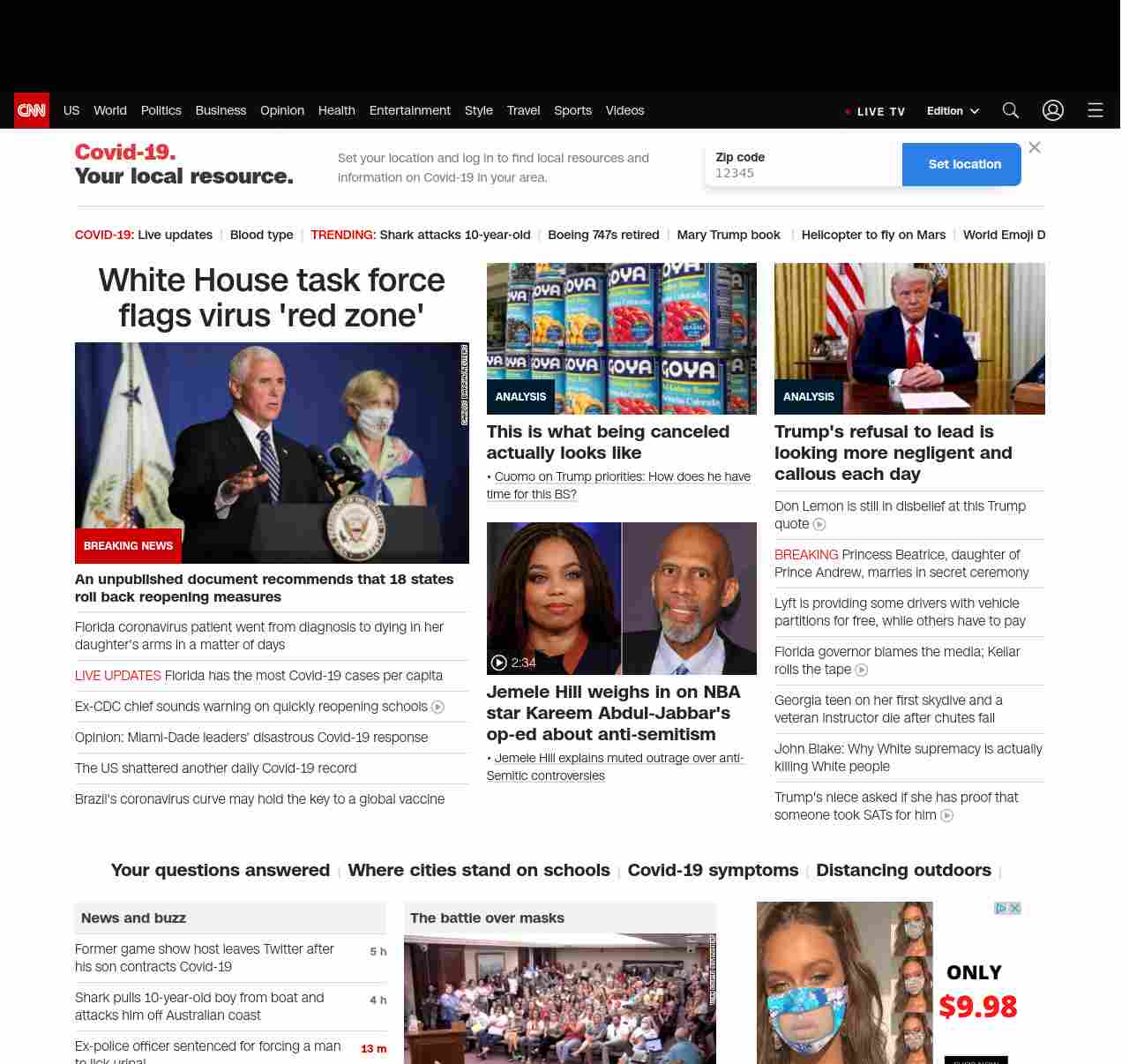 || screaming-banner-text banner-text-size–char-47″ data-analytics=”_list-hierarchical-xs_hyperlink_”> White House task force flags virus ‘red zone’ ||”},”chartbeat”:{“sections”:””},”branding_content_page”:”default”,”branding_content_zone”:[“default”],”branding_content_container”:[“default”,”cnn-money-markets”,”space-and-science”,”cnn-heroes-hp”],”branding_content_card”:[“”]} , edition: “domestic” , sourceId: ”