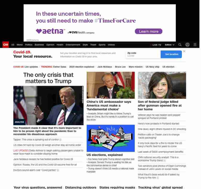 || screaming-banner-text banner-text-size–char-47″ data-analytics=”_list-hierarchical-xs_article_”> Trump insists he’s ‘right’ on the virus as more Americans get sick ||”},”chartbeat”:{“sections”:””},”branding_content_page”:”default”,”branding_content_zone”:[“default”],”branding_content_container”:[“default”,”cnn-money-markets”,”space-and-science”,”cnn-heroes-hp”],”branding_content_card”:[“”]} , edition: “domestic” , sourceId: ”
