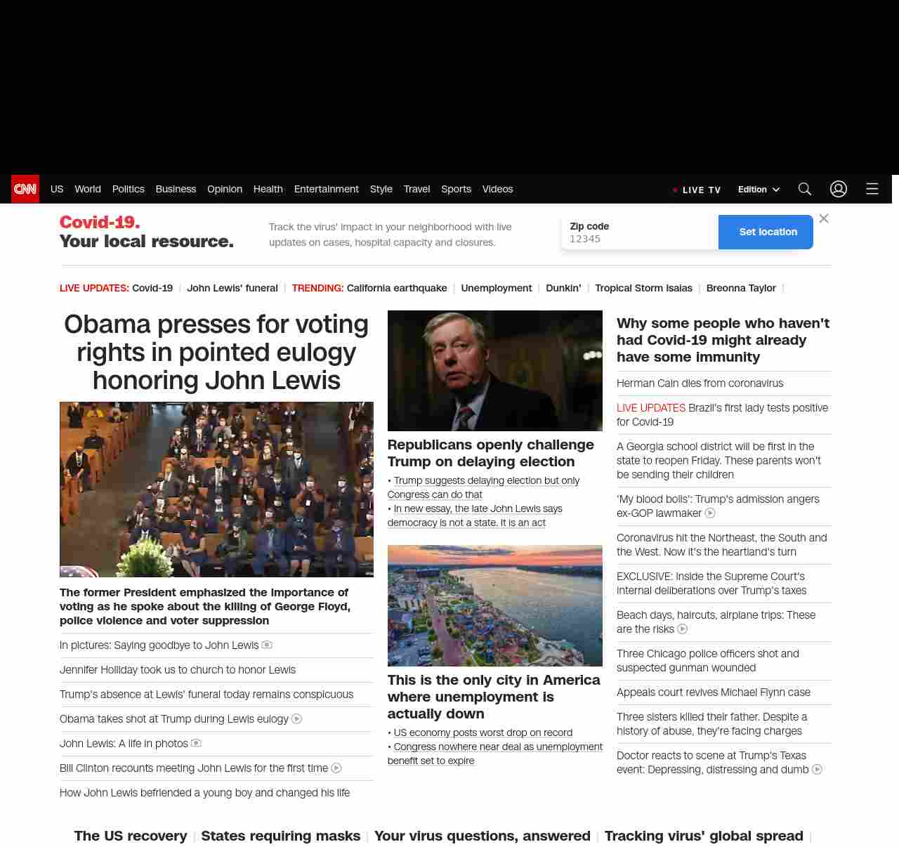 || screaming-banner-text banner-text-size–char-47″ data-analytics=”_list-hierarchical-xs_hyperlink_”> Obama presses for voting rights in pointed eulogy honoring John Lewis ||”},”chartbeat”:{“sections”:””},”branding_content_page”:”default”,”branding_content_zone”:[“default”],”branding_content_container”:[“default”,”cnn-money-markets”,”space-and-science”,”cnn-heroes-hp”],”branding_content_card”:[“”]} , edition: “domestic” , sourceId: ”