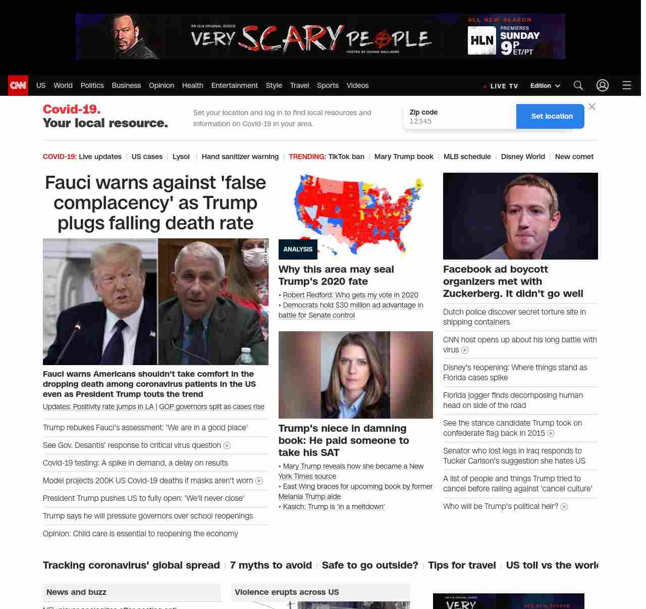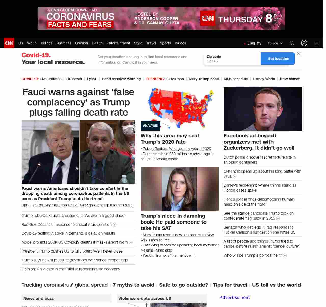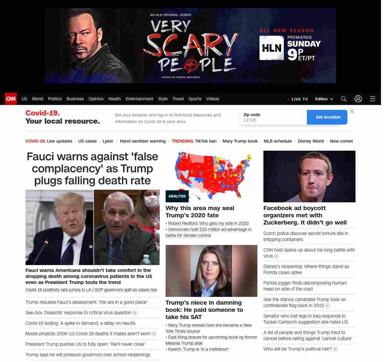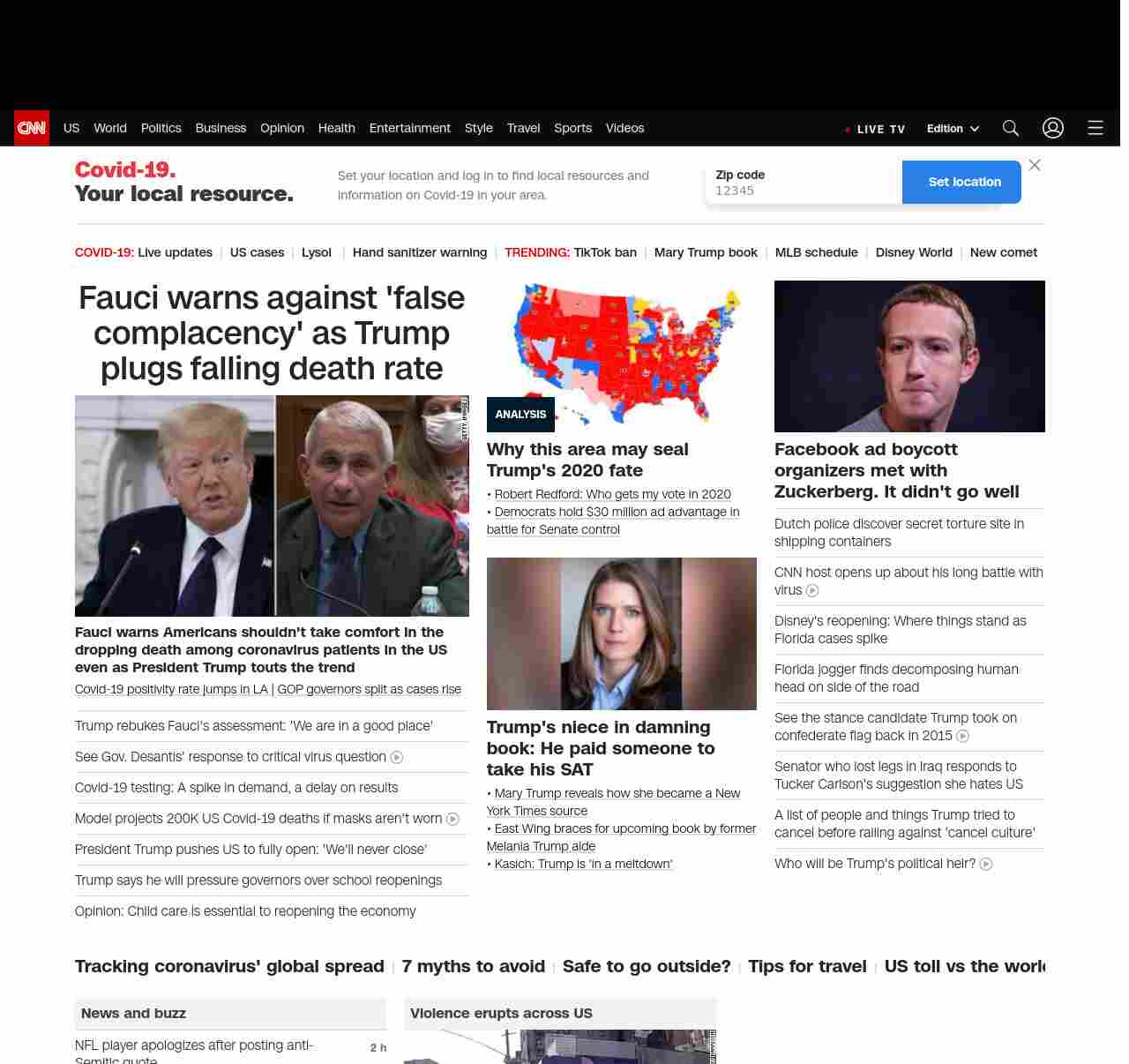 CNN1: FOXVCNN=|Fauci warns against ‘false complacency’ as Trump plugs falling death rate| ((lubuntu at wor3))
