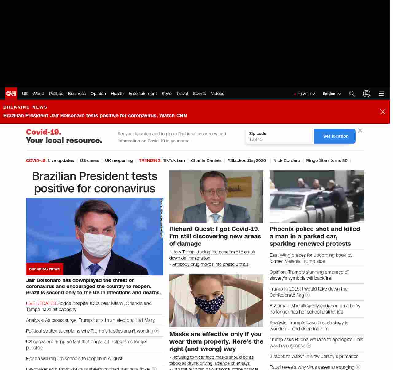|| screaming-banner-text banner-text-size–char-47″ data-analytics=”_list-hierarchical-xs_article_”> Brazilian President tests positive for coronavirus ||”},”chartbeat”:{“sections”:””},”branding_content_page”:”default”,”branding_content_zone”:[“default”],”branding_content_container”:[“default”,”cnn-money-markets”,”space-and-science”,”cnn-heroes-hp”],”branding_content_card”:[“”]} , edition: “domestic” , sourceId: ”