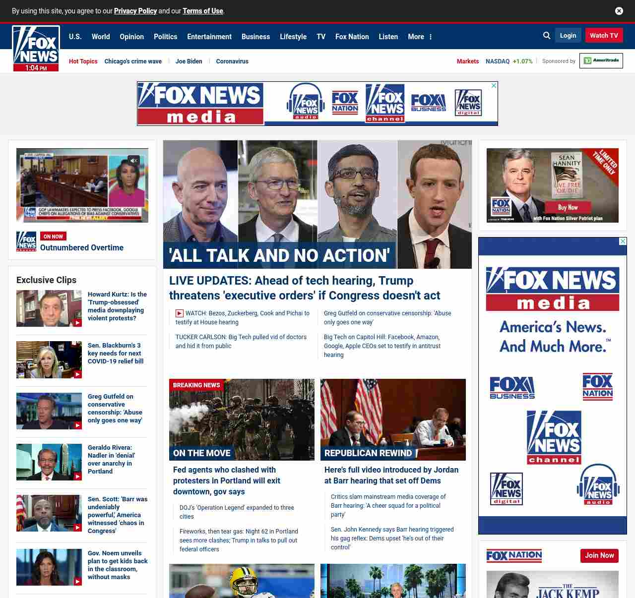FN: [[' ALL TALK AND NO ACTION' ]] LIVE UPDATES: Ahead of tech hearing, Trump threatens ' executive orders' if Congress doesn' t act ((lubuntu at wor3))