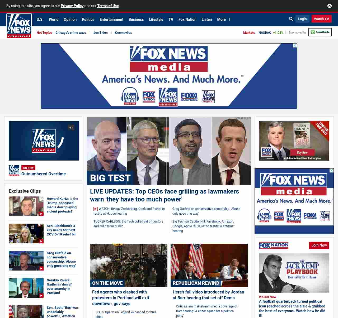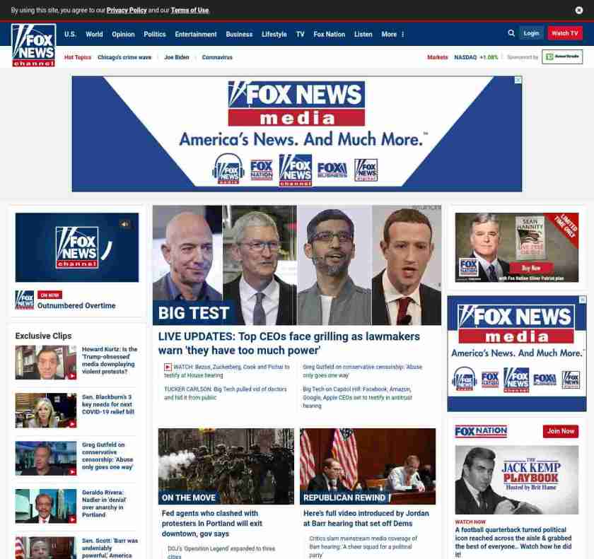 FN: [[BIG TEST]] LIVE UPDATES: Top tech CEOs face grilling as lawmakers warn ' they have too much power' ((lubuntu at wor3))