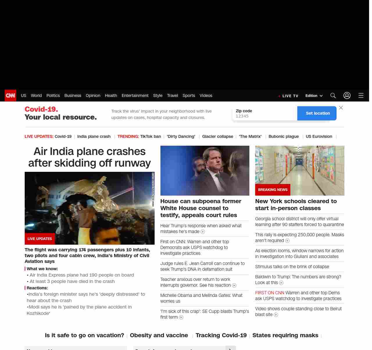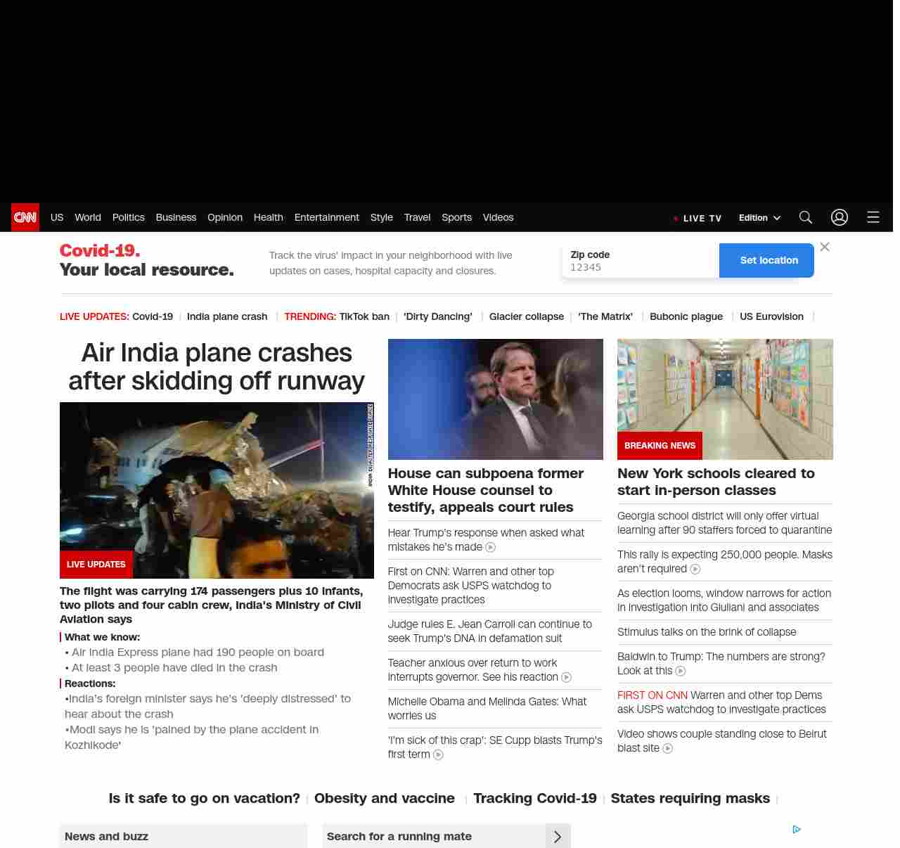 || screaming-banner-text banner-text-size–char-47″ data-analytics=”_list-hierarchical-xs_hyperlink_”> Air India plane crashes after skidding off runway ||”},”chartbeat”:{“sections”:””},”branding_content_page”:”default”,”branding_content_zone”:[“default”],”branding_content_container”:[“default”,”cnn-money-markets”,”space-and-science”,”project-planet”],”branding_content_card”:[“”]} , edition: “domestic” , sourceId: ”