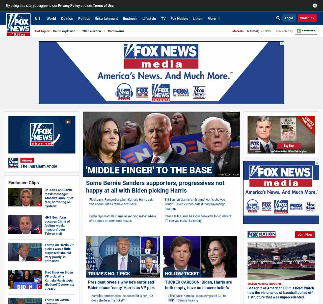 FN: [[' MIDDLE FINGER' TO THE BASE]] Some Bernie Sanders supporters, progressives not happy at all with Biden picking Harris ((lubuntu at wor3))