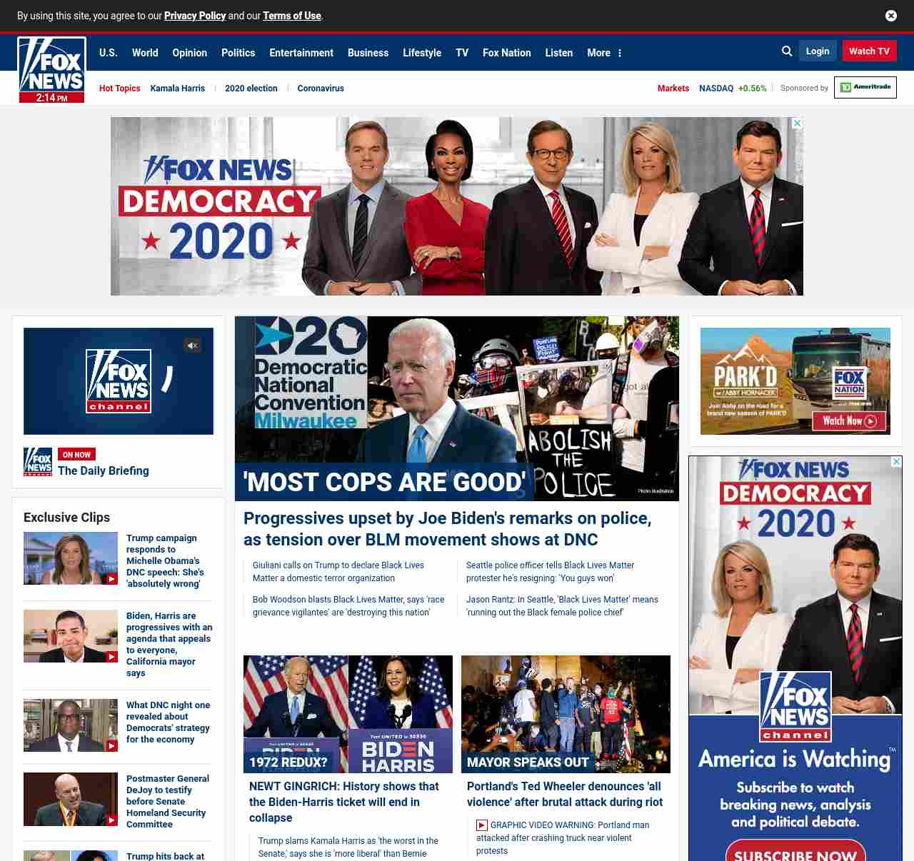 FN: [[' MOST COPS ARE GOOD' ]] Progressives upset by Joe Biden' s remarks on police, as tension over BLM movement shows at DNC ((lubuntu at wor3))