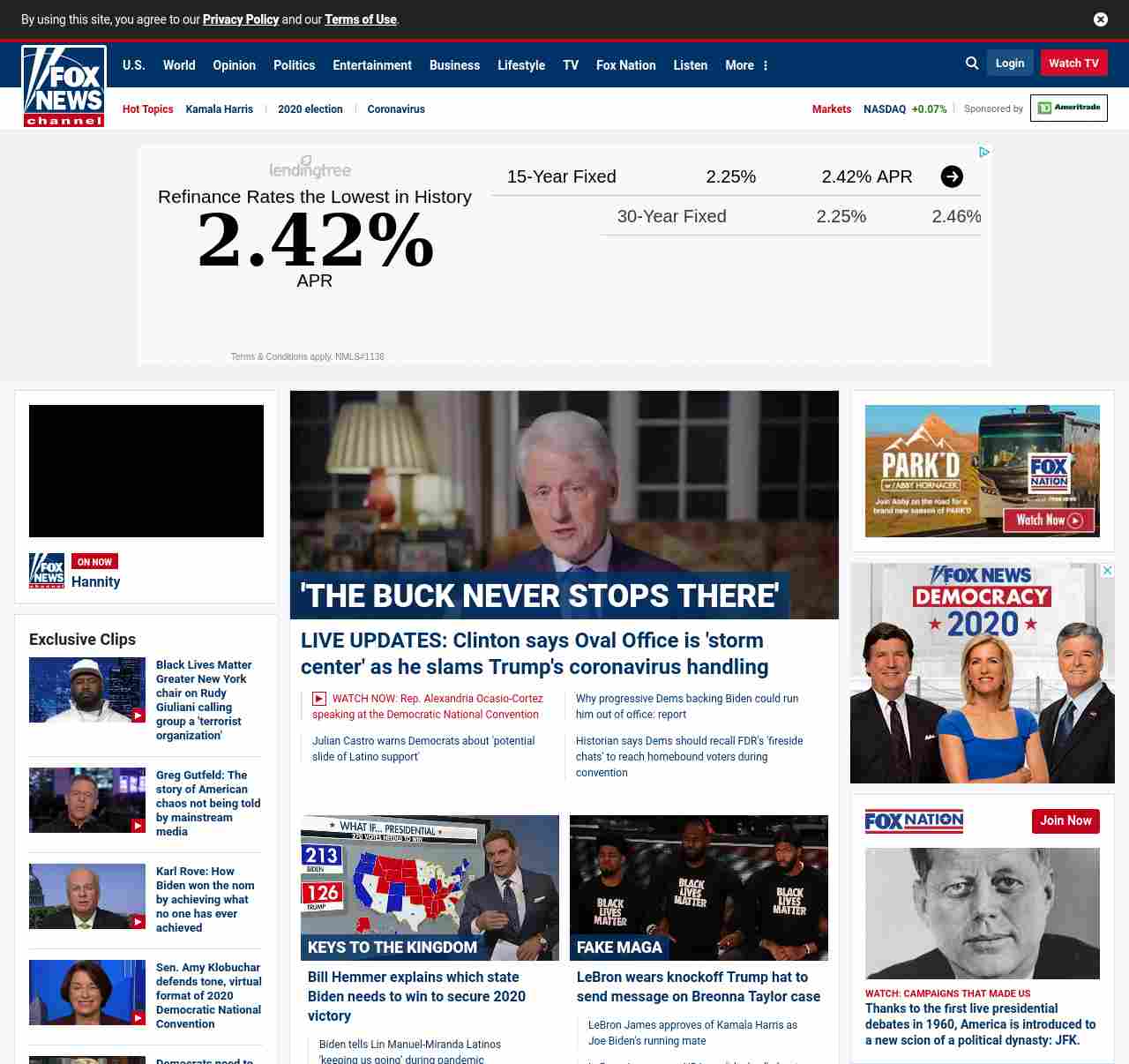 =”https://www.foxnews.com/politics/democratic-national-convention-day-two-live-updates“>LIVE UPDATES: Clinton says Oval Office is ‘storm center’ as he slams Trump’s coronavirus handling