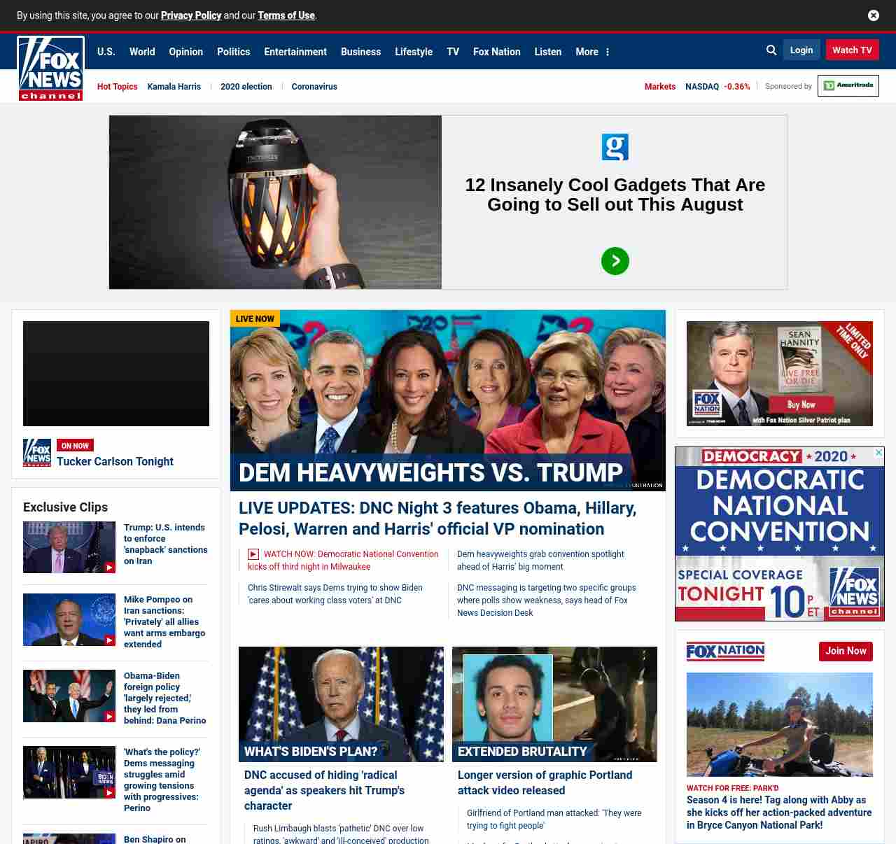 FN: [[DEM HEAVYWEIGHTS VS. TRUMP]] LIVE UPDATES: DNC Night 3 features Obama, Hillary, Pelosi, Warren and Harris' official VP nomination ((lubuntu at wor3))