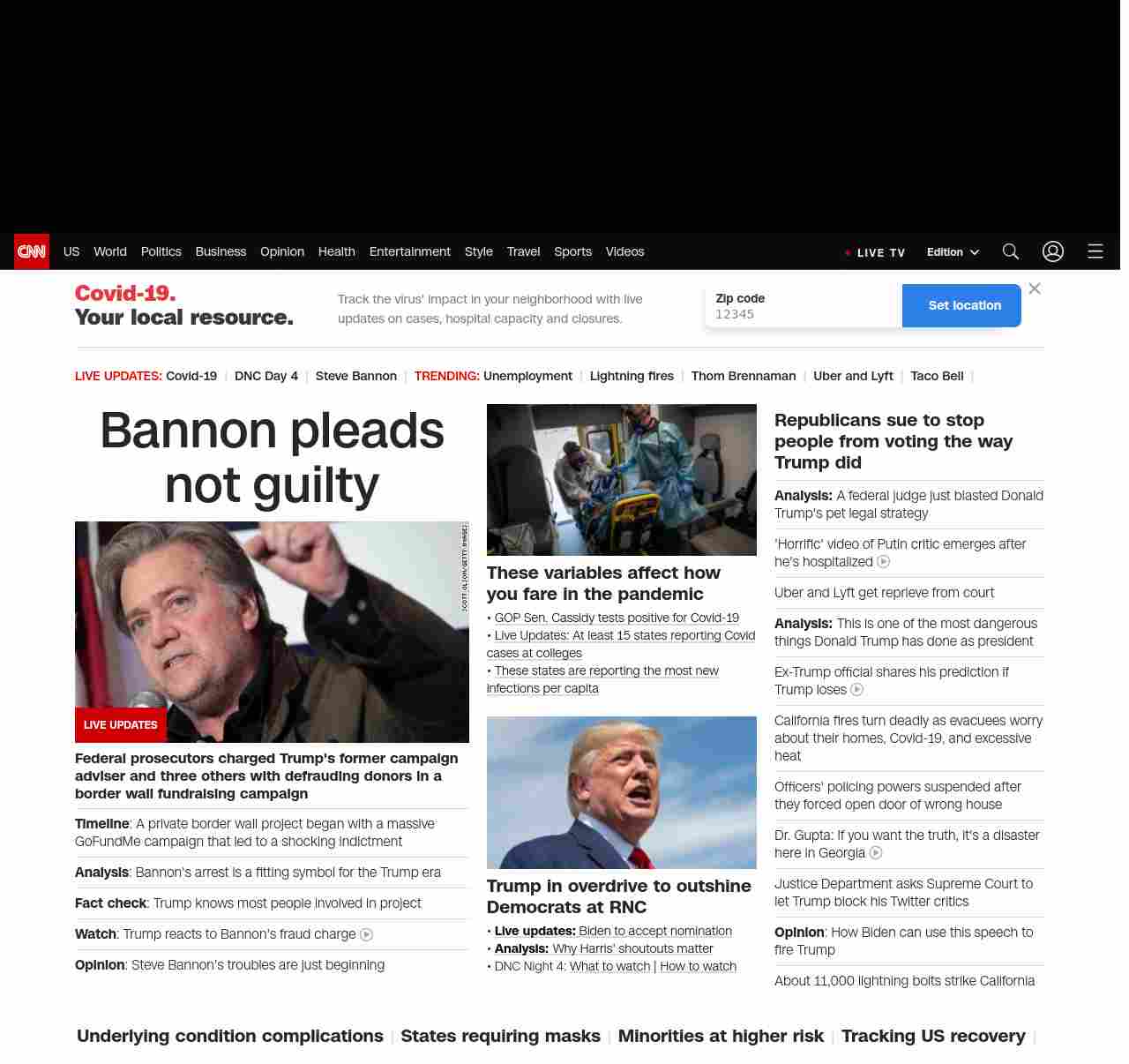 || screaming-banner-text banner-text-size–char-26″ data-analytics=”_list-hierarchical-xs_hyperlink_”> Bannon pleads not guilty ||”},”chartbeat”:{“sections”:””},”branding_content_page”:”cnn-dnc-live-blog”,”branding_content_zone”:[“default”],”branding_content_container”:[“default”,”cnn-money-markets”,”space-and-science”,”project-planet”],”branding_content_card”:[“”]} , edition: “domestic” , sourceId: ”