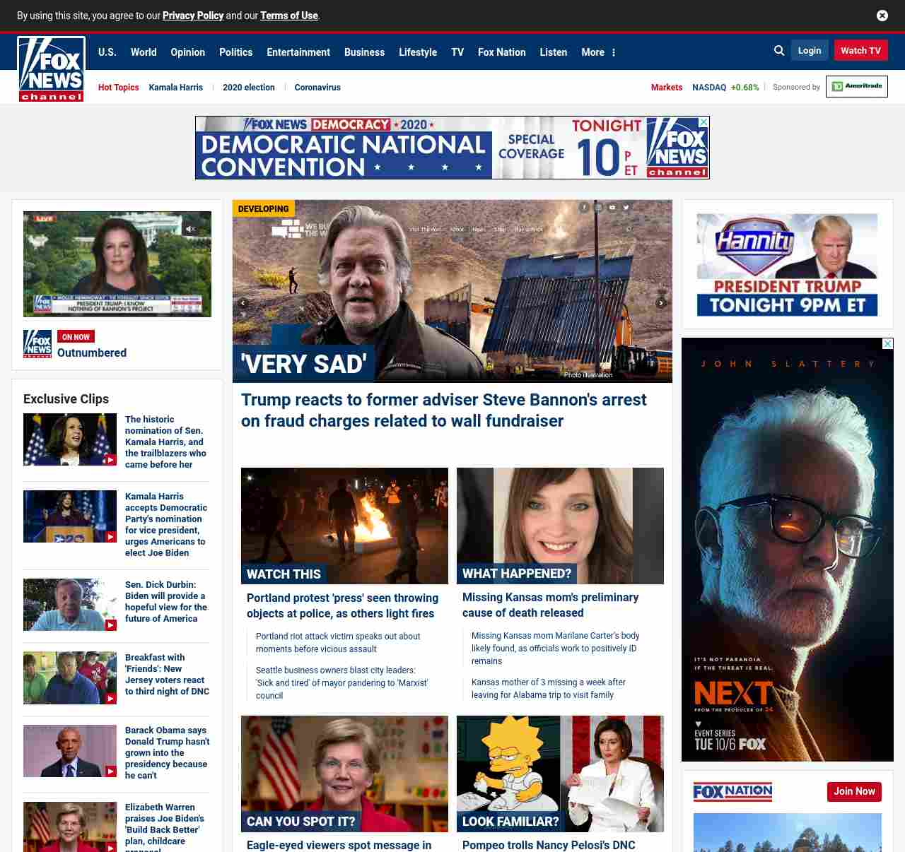 FN: [[' VERY SAD' ]] Trump reacts to former adviser Steve Bannon' s arrest on fraud charges related to wall fundraiser ((lubuntu at wor3))