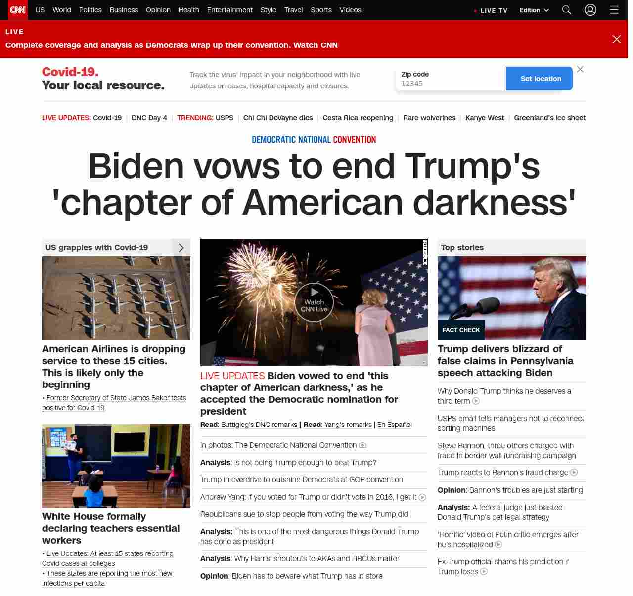 || banner-text–natural”> Biden vows to end Trump’s ‘chapter of American darkness’ ||”},”chartbeat”:{“sections”:””},”branding_content_page”:”cnn-dnc-live-blog”,”branding_content_zone”:[“default”],”branding_content_container”:[“default”,”cnn-money-markets”,”space-and-science”,”project-planet”],”branding_content_card”:[“”]} , edition: “domestic” , sourceId: ”