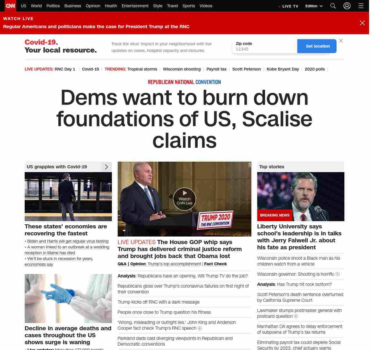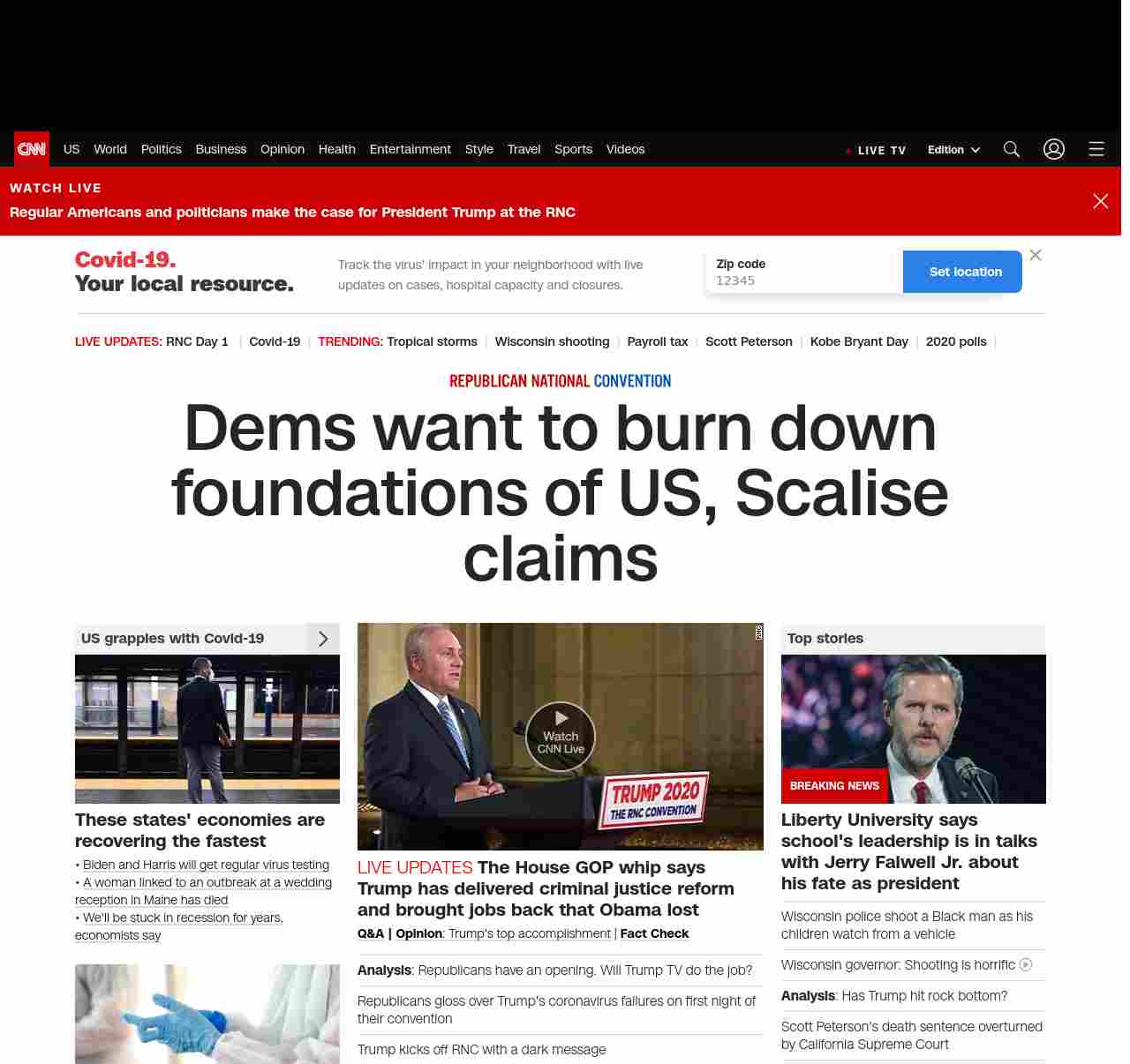 || banner-text–natural”> Dems want to burn down foundations of US, Scalise claims ||”},”chartbeat”:{“sections”:””},”branding_content_page”:”cnn-dnc-live-blog”,”branding_content_zone”:[“default”],”branding_content_container”:[“default”,”cnn-money-markets”,”space-and-science”,”project-planet”],”branding_content_card”:[“”]} , edition: “domestic” , sourceId: ”