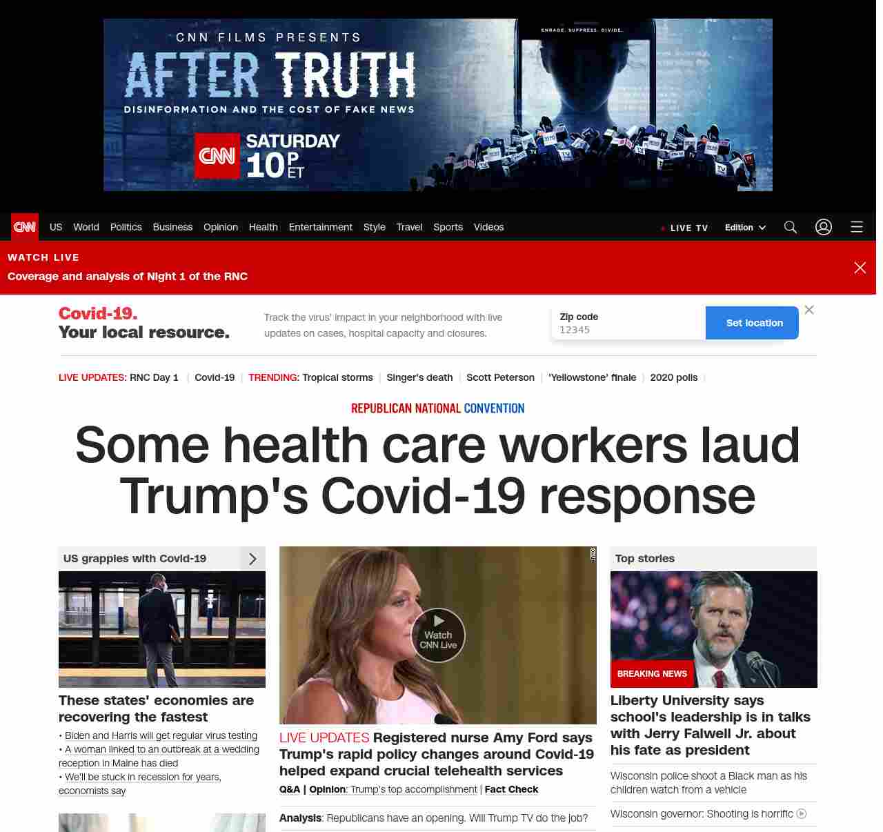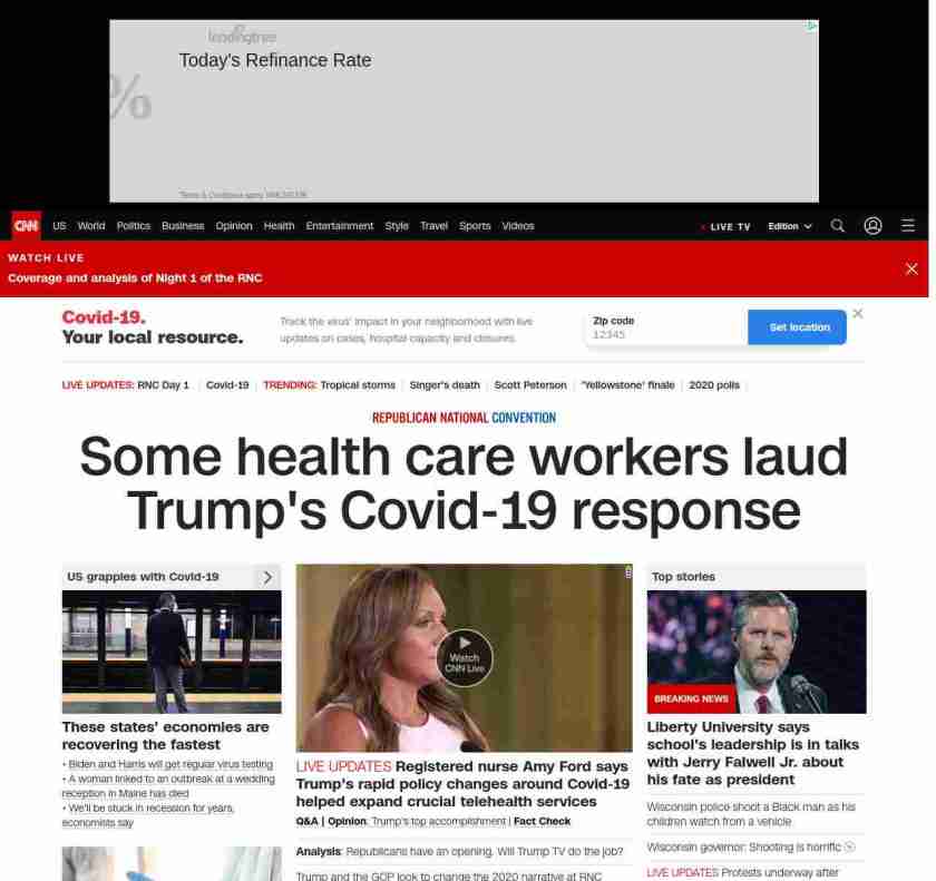 || banner-text–natural”> Some health care workers laud Trump’s Covid-19 response ||”},”chartbeat”:{“sections”:””},”branding_content_page”:”cnn-dnc-live-blog”,”branding_content_zone”:[“default”],”branding_content_container”:[“default”,”cnn-money-markets”,”space-and-science”,”project-planet”],”branding_content_card”:[“”]} , edition: “domestic” , sourceId: ”