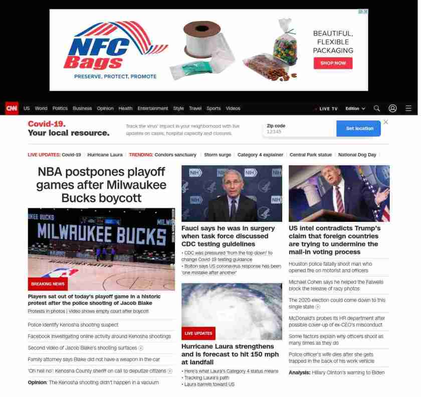 CNN1: FOXVCNN=|NBA postpones playoff games after Milwaukee Bucks boycott| ((lubuntu at wor3))