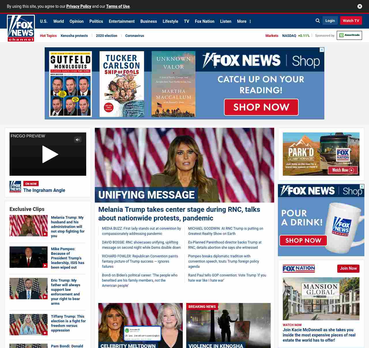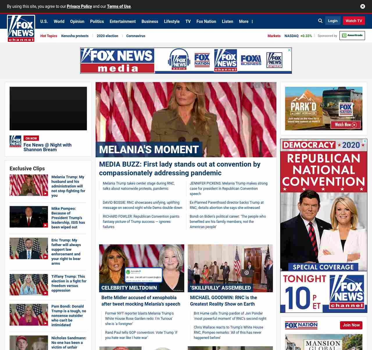 FN: [[MELANIA' S MOMENT]] MEDIA BUZZ: First lady stands out at convention by compassionately addressing pandemic ((lubuntu at wor3))