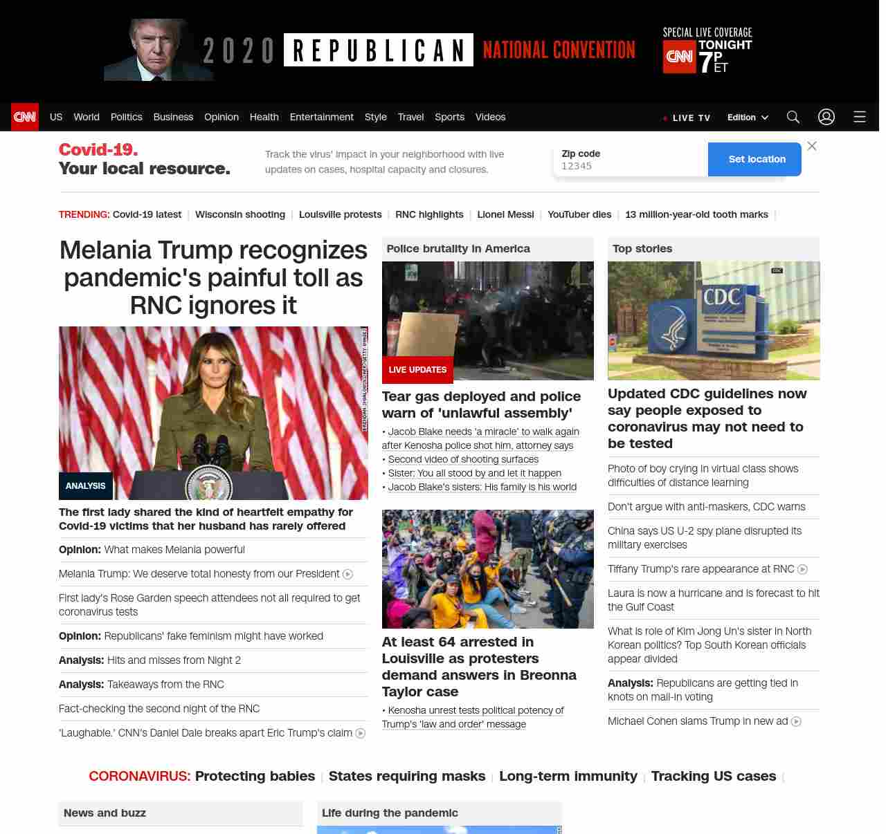 || screaming-banner-text banner-text-size–char-47″ data-analytics=”_list-hierarchical-xs_article_”> Melania Trump recognizes pandemic’s painful toll as RNC ignores it ||”},”chartbeat”:{“sections”:””},”branding_content_page”:”cnn-dnc-live-blog”,”branding_content_zone”:[“default”],”branding_content_container”:[“default”,”cnn-money-markets”,”space-and-science”,”cnn-heroes-hp”,”project-planet”],”branding_content_card”:[“”,”default”]} , edition: “domestic” , sourceId: ”