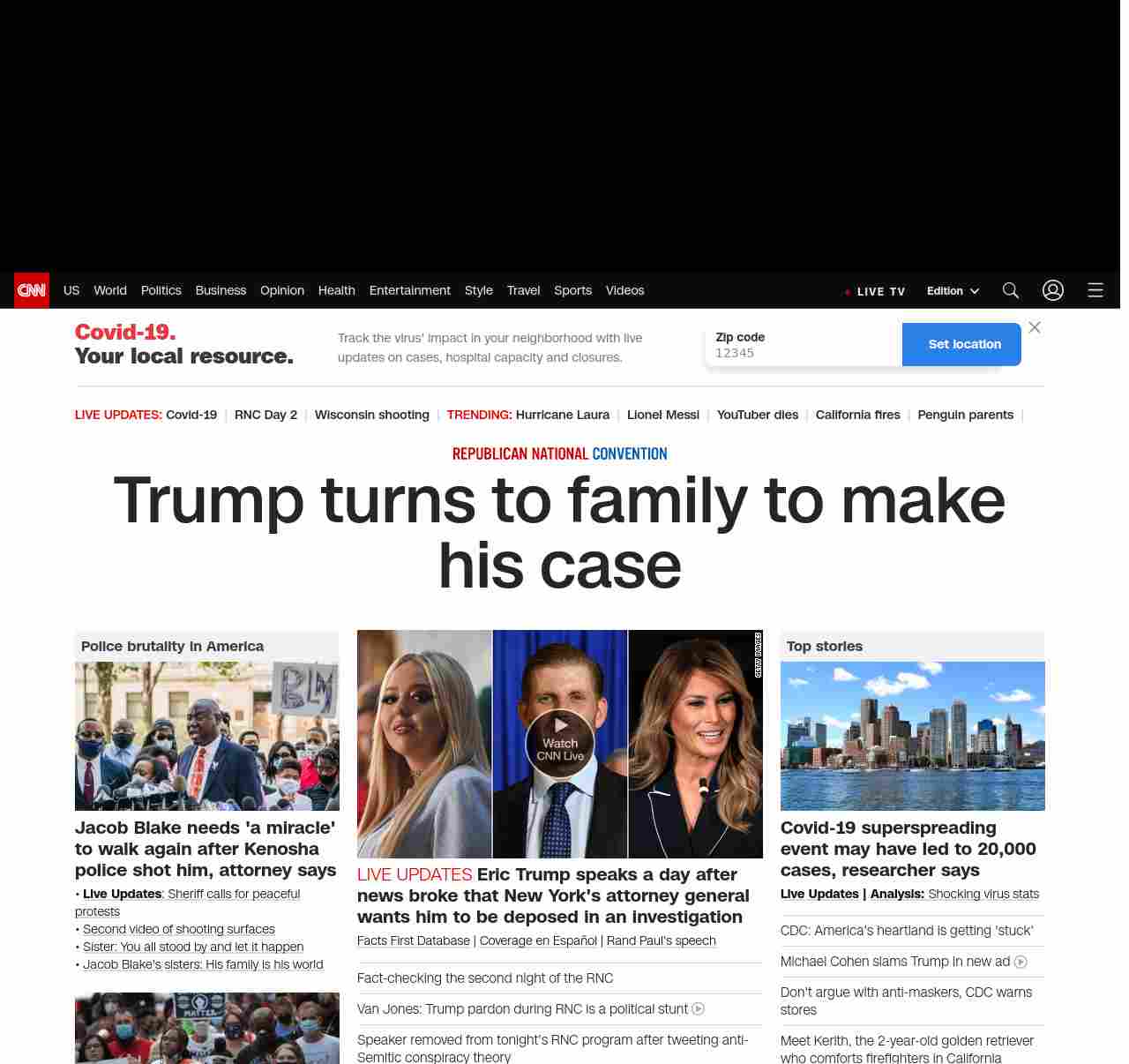 || banner-text–natural”> Trump turns to family to make his case ||”},”chartbeat”:{“sections”:””},”branding_content_page”:”cnn-dnc-live-blog”,”branding_content_zone”:[“default”],”branding_content_container”:[“default”,”cnn-money-markets”,”space-and-science”,”cnn-heroes-hp”,”project-planet”],”branding_content_card”:[“”,”default”]} , edition: “domestic” , sourceId: ”