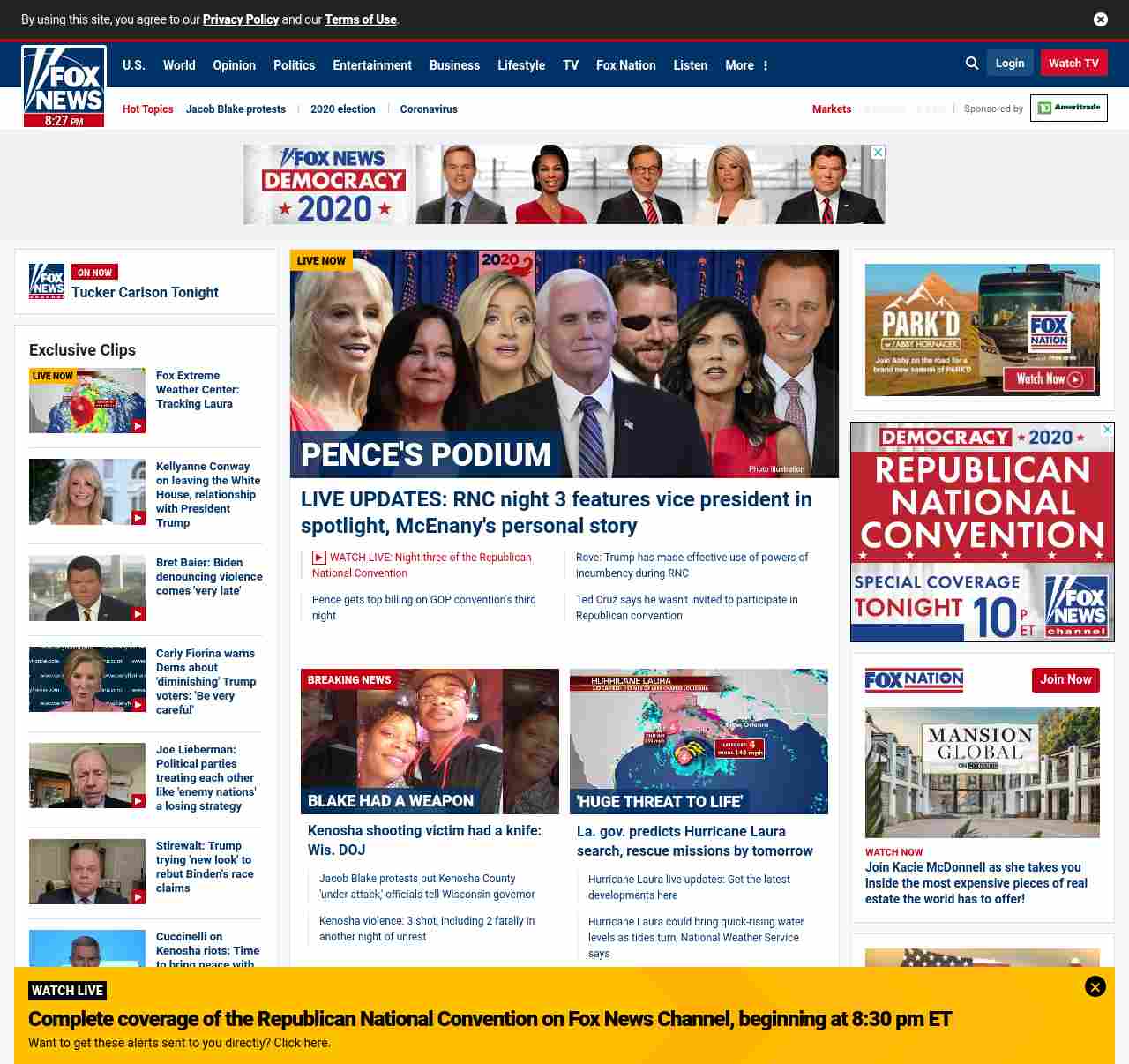 FN: [[PENCE' S PODIUM]] LIVE UPDATES: RNC night 3 features vice president in spotlight, McEnany' s personal story and more ((lubuntu at wor3))