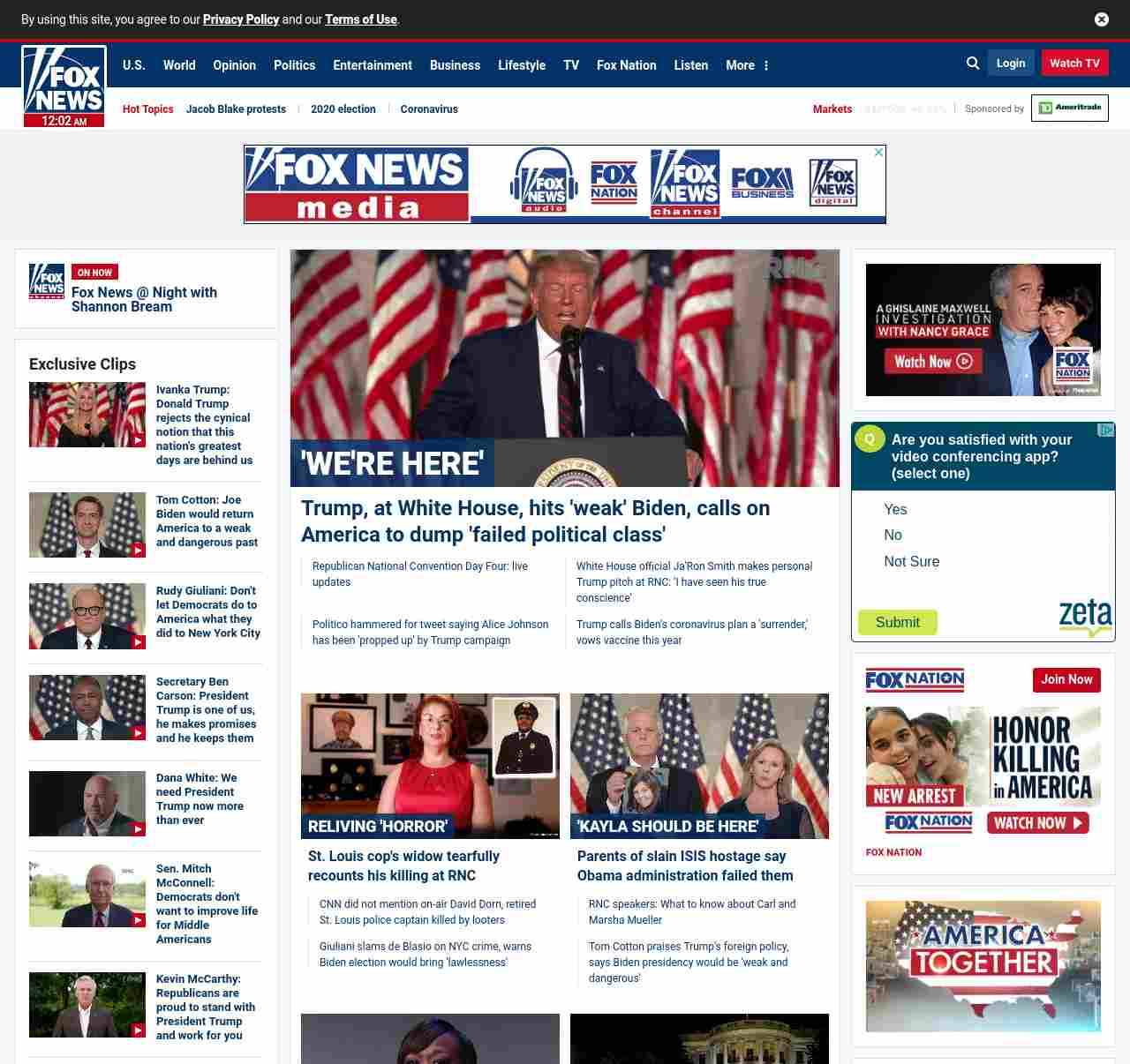 FN: [[' WE' RE HERE' ]] Trump, at White House, hits ' weak' Biden, calls on America to dump ' failed political class' ((lubuntu at wor3))