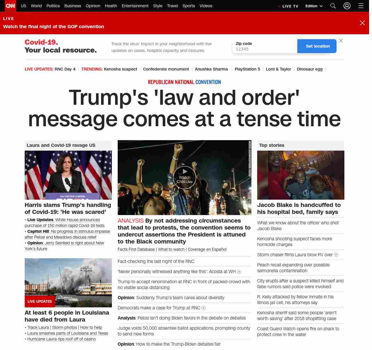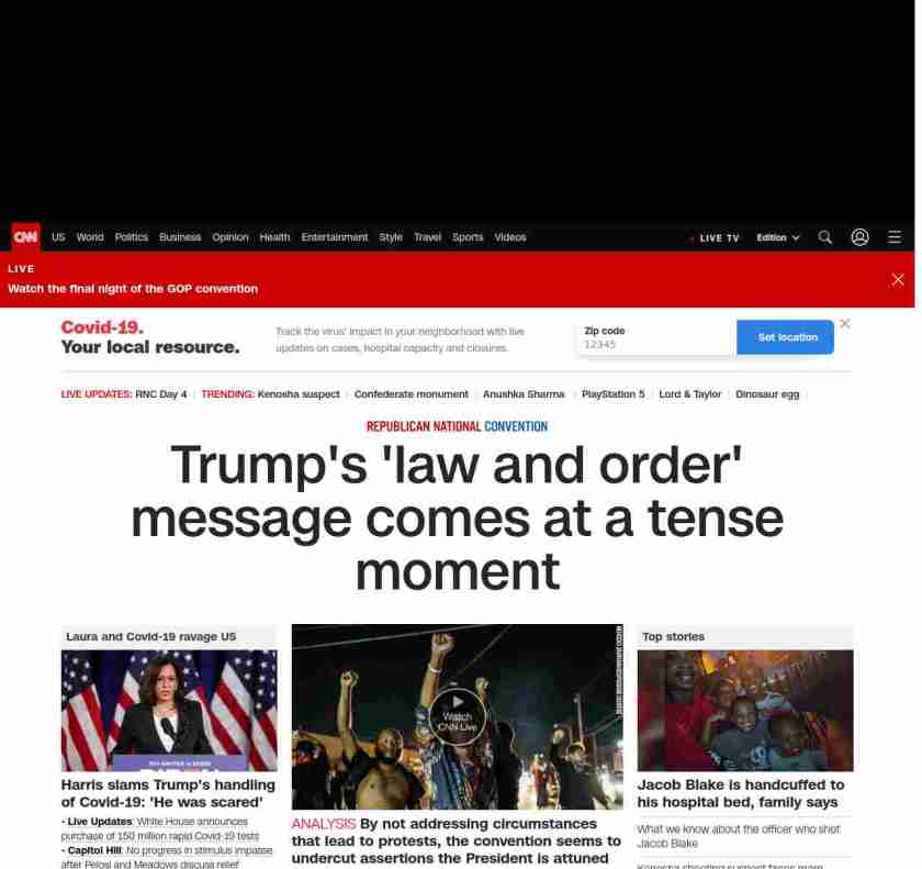 || banner-text–natural”> Trump’s ‘law and order’ message comes at a tense moment ||”},”chartbeat”:{“sections”:””},”branding_content_page”:”cnn-dnc-live-blog”,”branding_content_zone”:[“default”],”branding_content_container”:[“default”,”cnn-money-markets”,”space-and-science”,”cnn-heroes-hp”],”branding_content_card”:[“”]} , edition: “domestic” , sourceId: ”